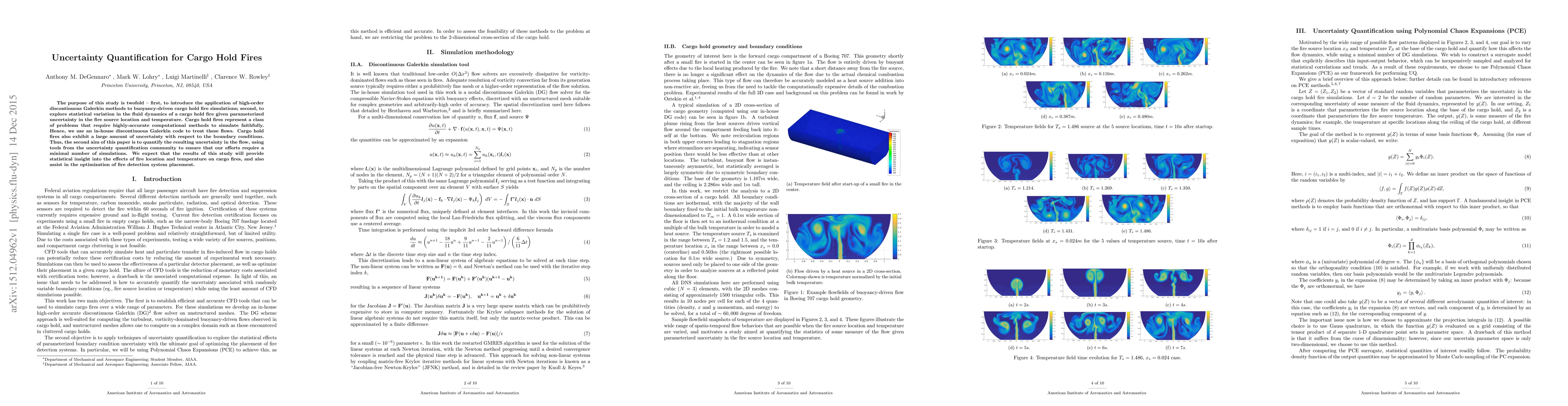 This study applies high-order discontinuous Galerkin methods to simulate buoyancy-driven cargo hold fires, focusing on the statistical variation in fluid dynamics due to uncertainties in fire source location and temperature. The research aims to quantify the resulting uncertainty and provide insights for optimizing fire detection systems.