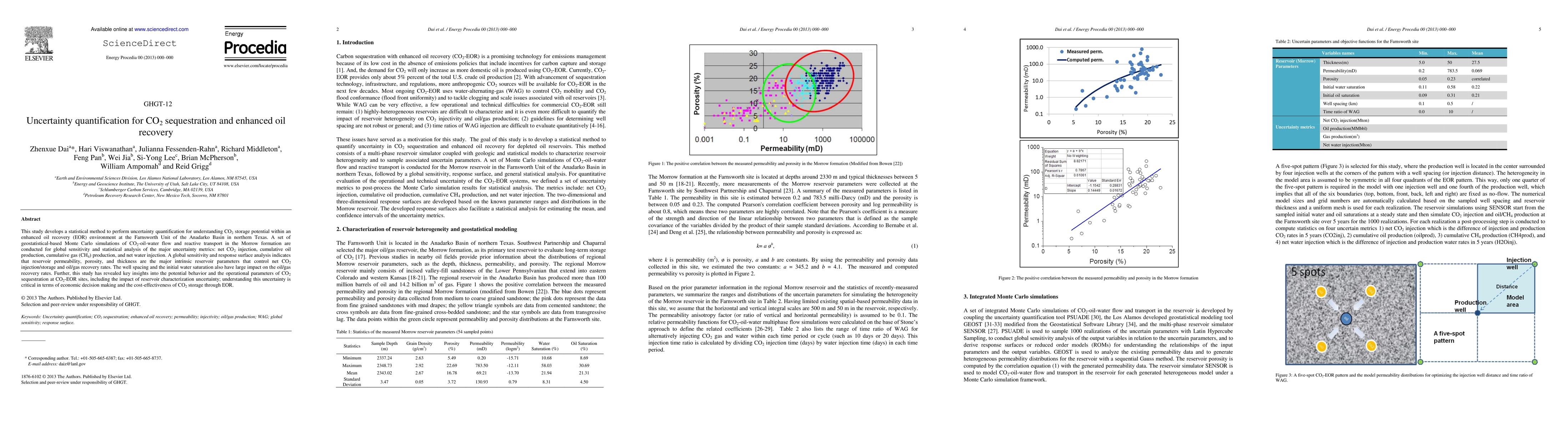 This study employs geostatistical-based Monte Carlo simulations to quantify uncertainties in CO2 sequestration and enhanced oil recovery at the Farnsworth Unit, identifying reservoir permeability, porosity, and thickness as key factors affecting CO2 storage and oil/gas recovery rates. The research highlights the importance of understanding reservoir characterization uncertainty for economic decision-making in CO2-EOR operations.