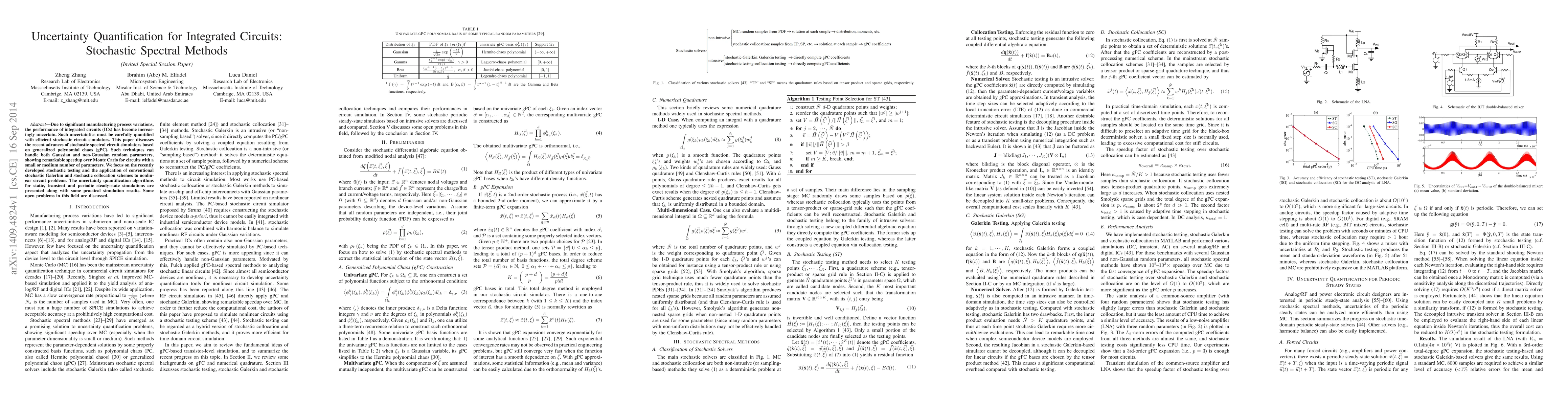 This paper explores advanced stochastic spectral methods for quantifying uncertainties in integrated circuit performance due to manufacturing variations. It highlights recent advances in generalized polynomial chaos-based simulators, which outperform Monte Carlo methods for circuits with a few to moderate parameters, and presents practical results for static, transient, and periodic simulations.