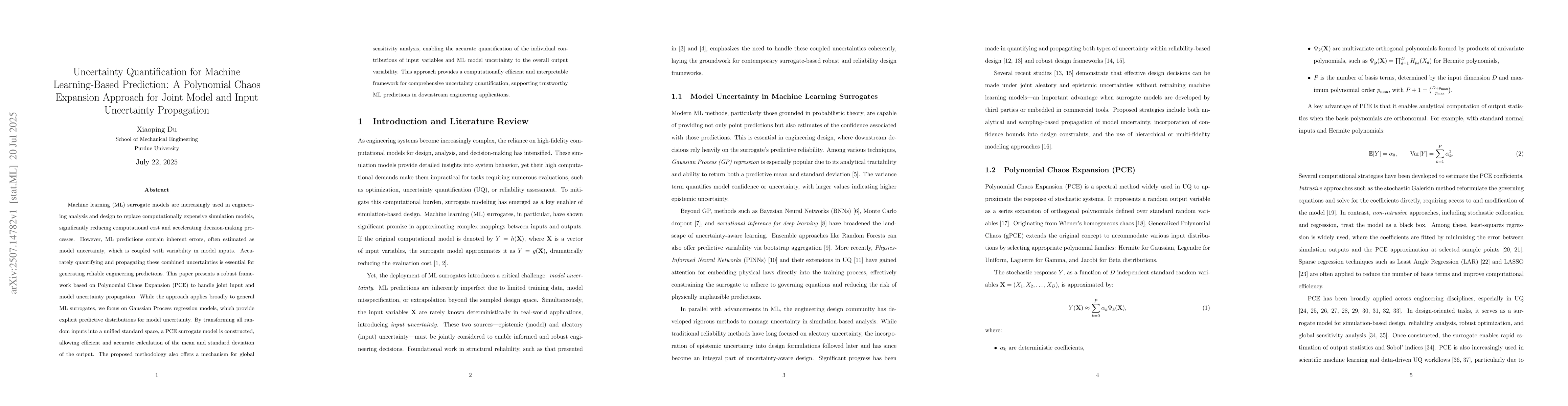 Machine learning (ML) surrogate models are increasingly used in engineering analysis and design to replace computationally expensive simulation models, significantly reducing computational cost and accelerating decision-making processes. However, ML predictions contain inherent errors, often estimated as model uncertainty, which is coupled with variability in model inputs. Accurately quantifying and propagating these combined uncertainties is essential for generating reliable engineering predictions. This paper presents a robust framework based on Polynomial Chaos Expansion (PCE) to handle joint input and model uncertainty propagation. While the approach applies broadly to general ML surrogates, we focus on Gaussian Process regression models, which provide explicit predictive distributions for model uncertainty. By transforming all random inputs into a unified standard space, a PCE surrogate model is constructed, allowing efficient and accurate calculation of the mean and standard deviation of the output. The proposed methodology also offers a mechanism for global sensitivity analysis, enabling the accurate quantification of the individual contributions of input variables and ML model uncertainty to the overall output variability. This approach provides a computationally efficient and interpretable framework for comprehensive uncertainty quantification, supporting trustworthy ML predictions in downstream engineering applications.