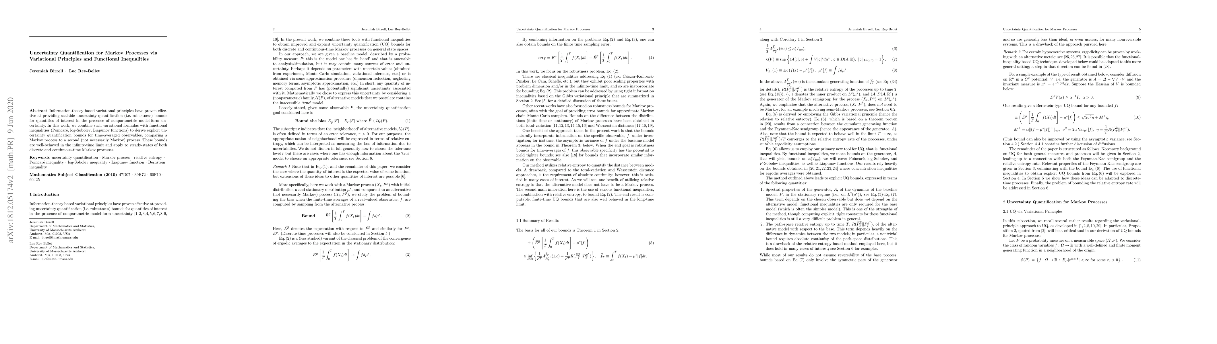 This paper combines variational principles and functional inequalities to derive scalable uncertainty quantification bounds for Markov processes, providing robustness against nonparametric model-form uncertainty. The derived bounds apply to time-averaged observables and are valid in the infinite-time limit for both discrete and continuous-time Markov processes.