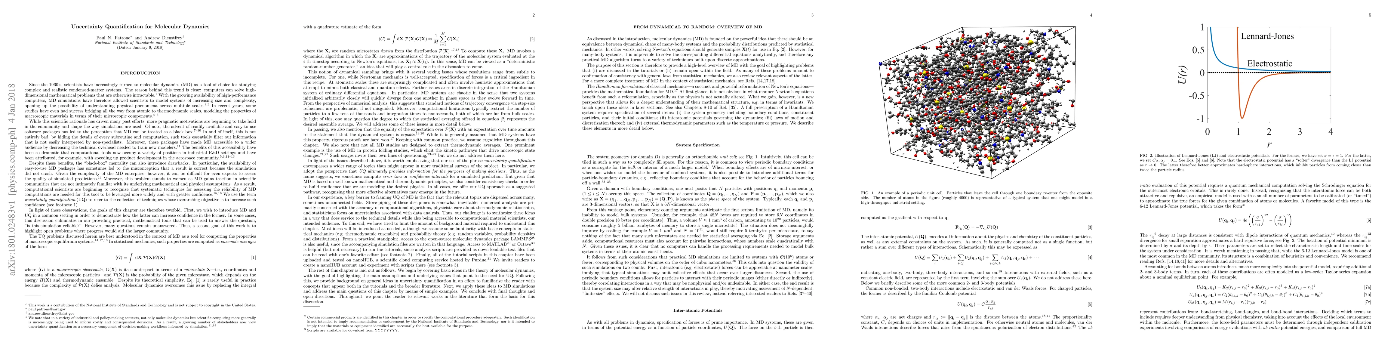 This paper introduces molecular dynamics and uncertainty quantification to enhance confidence in MD simulations, offering practical tools to assess simulation reliability while also identifying open problems that require further research.