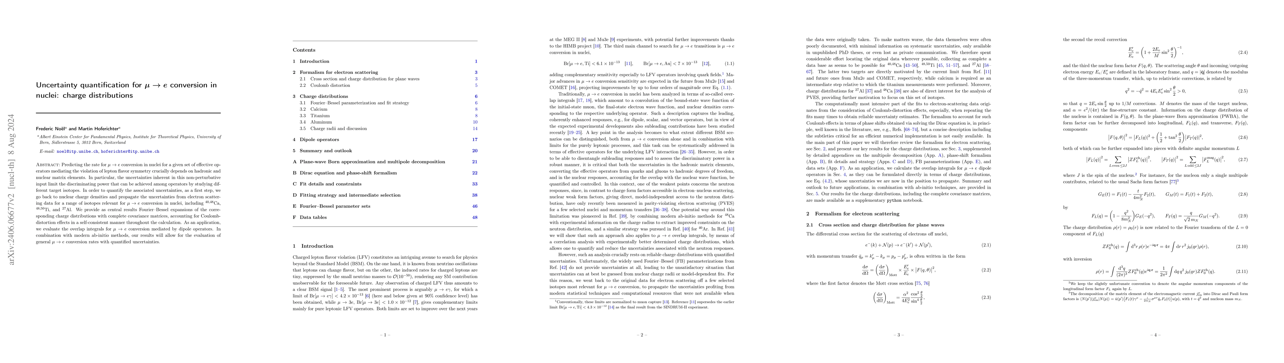 The novelty lies in the comprehensive quantification of uncertainties in nuclear charge distributions and their application to $\mu\to e$ conversion studies, providing a robust framework for future precision tests of lepton flavor violation.