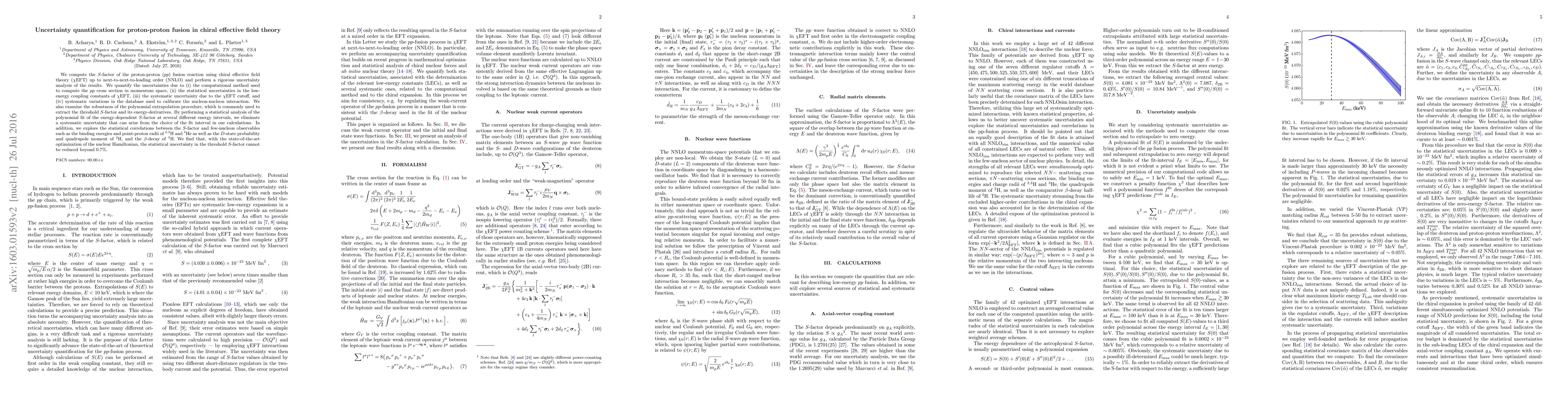 This paper quantifies uncertainties in the $S$-factor for proton-proton fusion using chiral effective field theory up to NNLO, analyzing errors from computational methods, statistical constants, cutoffs, and database calibration. It also assesses the robustness of polynomial extrapolation and finds that the statistical uncertainty in the threshold $S$-factor is limited to 0.7% despite optimization.