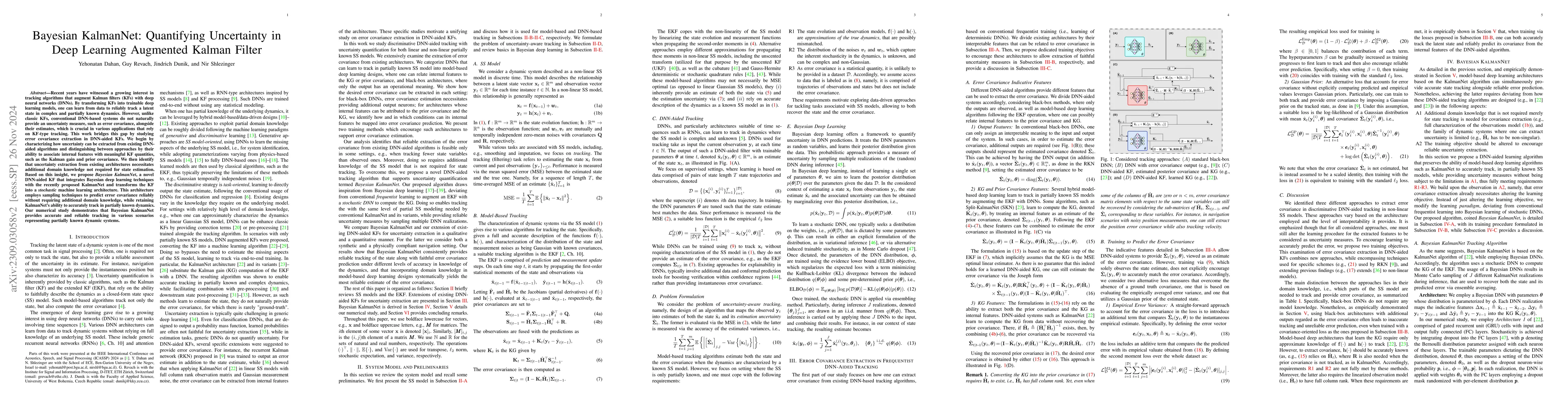 This paper investigates methods for extracting error covariance in deep learning-augmented Kalman Filters, crucial for applications like navigation. It compares three approaches based on associating DNN features with Kalman Gain and prior covariance, finding that model-based/data-driven designs yield the most accurate error predictions.
