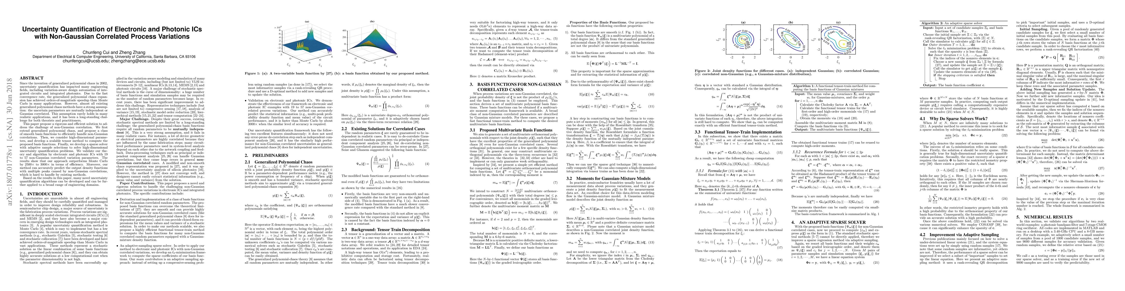 This paper proposes an advanced method for uncertainty quantification in electronic and photonic ICs, addressing the challenge of non-Gaussian correlated process variations. The authors extend generalized polynomial chaos with new basis functions and a scalable tensor method, achieving significant efficiency improvements over Monte Carlo simulations.