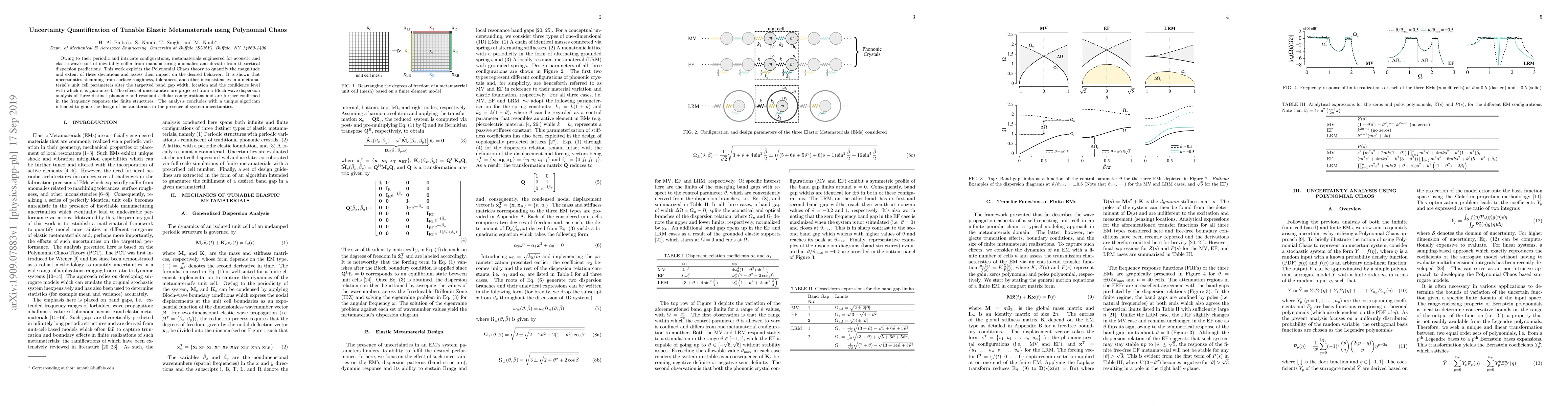 This research paper uses Polynomial Chaos to quantify uncertainties in tunable elastic metamaterials, revealing how manufacturing anomalies affect their performance. It develops an algorithm to guide metamaterial design under system uncertainties.