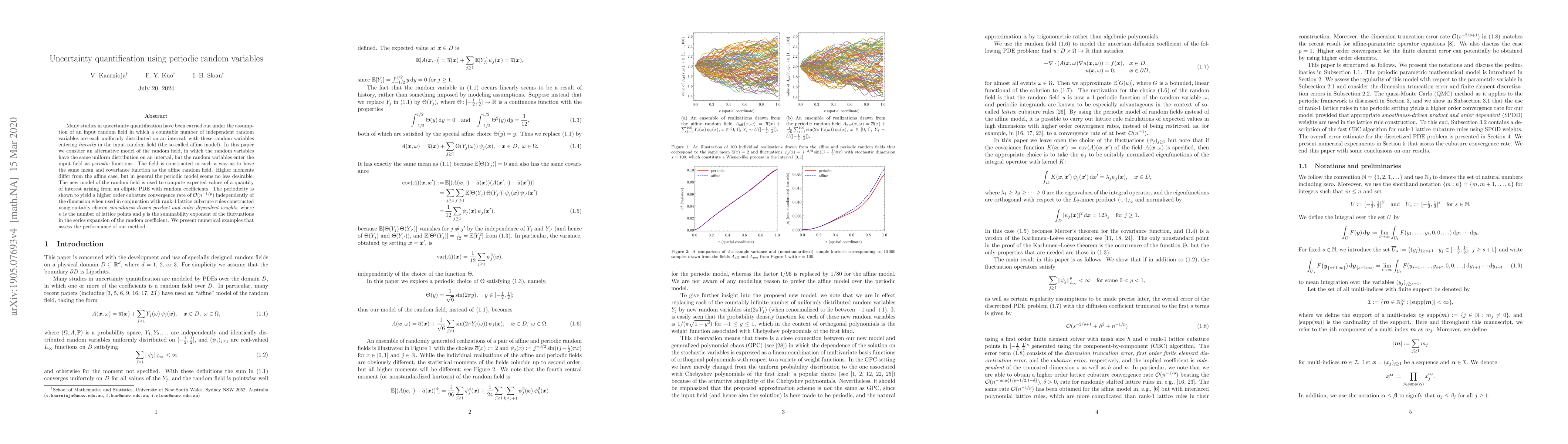 This paper proposes an alternative model for uncertainty quantification using periodic random variables instead of the traditional affine model. The periodic model maintains the same mean and covariance but offers higher moments and improved convergence rates, particularly $\mathcal{O}(n^{-1/p})$, when used with rank-1 lattice cubature rules. Numerical examples demonstrate the method's effectiveness.