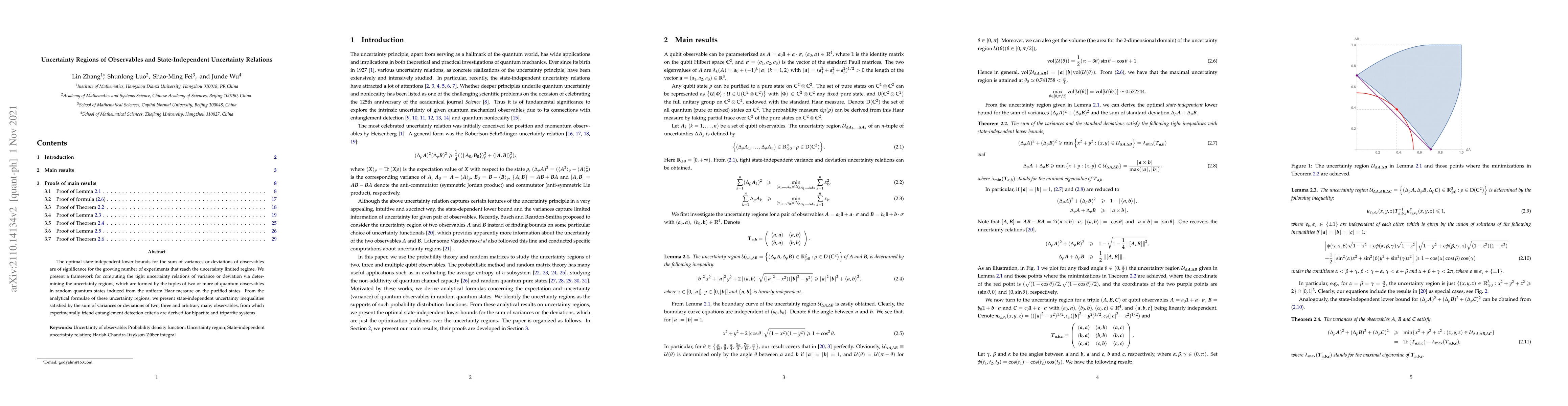 This paper develops a framework for deriving optimal state-independent uncertainty relations for the sum of variances or deviations of quantum observables, providing tight bounds that are significant for experiments operating in the uncertainty-limited regime. The framework determines uncertainty regions from random quantum states, leading to experimentally useful entanglement detection criteria.