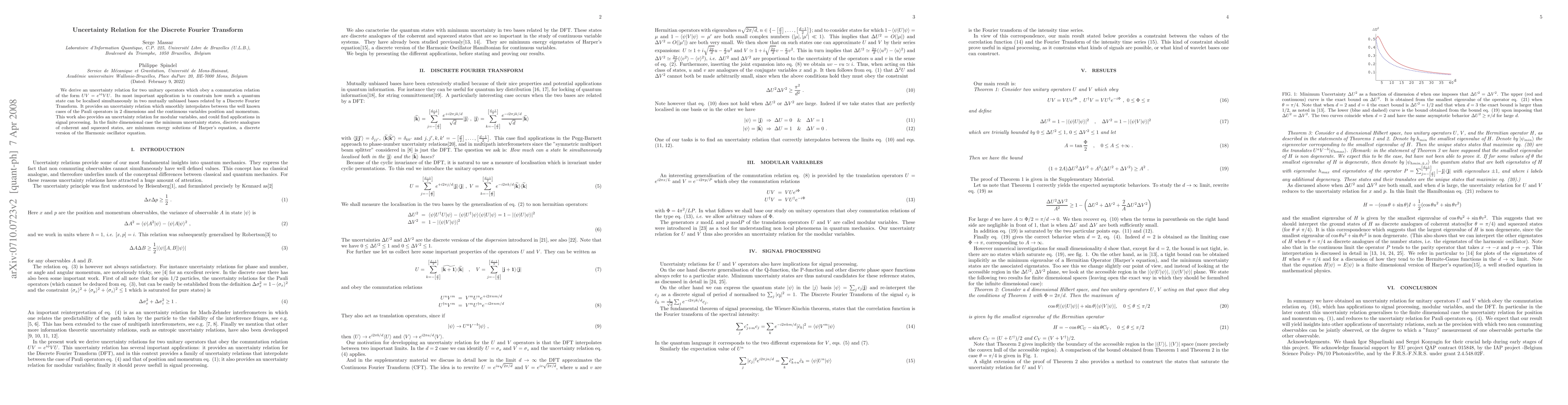 We derive an uncertainty relation for two unitary operators which obey a commutation relation of the form UV=exp[i phi] VU. Its most important application is to constrain how much a quantum state can be localised simultaneously in two mutually unbiased bases related by a Discrete Fourier Transform. It provides an uncertainty relation which smoothly interpolates between the well known cases of the Pauli operators in 2 dimensions and the continuous variables position and momentum. This work also provides an uncertainty relation for modular variables, and could find applications in signal processing. In the finite dimensional case the minimum uncertainty states, discrete analogues of coherent and squeezed states, are minimum energy solutions of Harper's equation, a discrete version of the Harmonic oscillator equation.