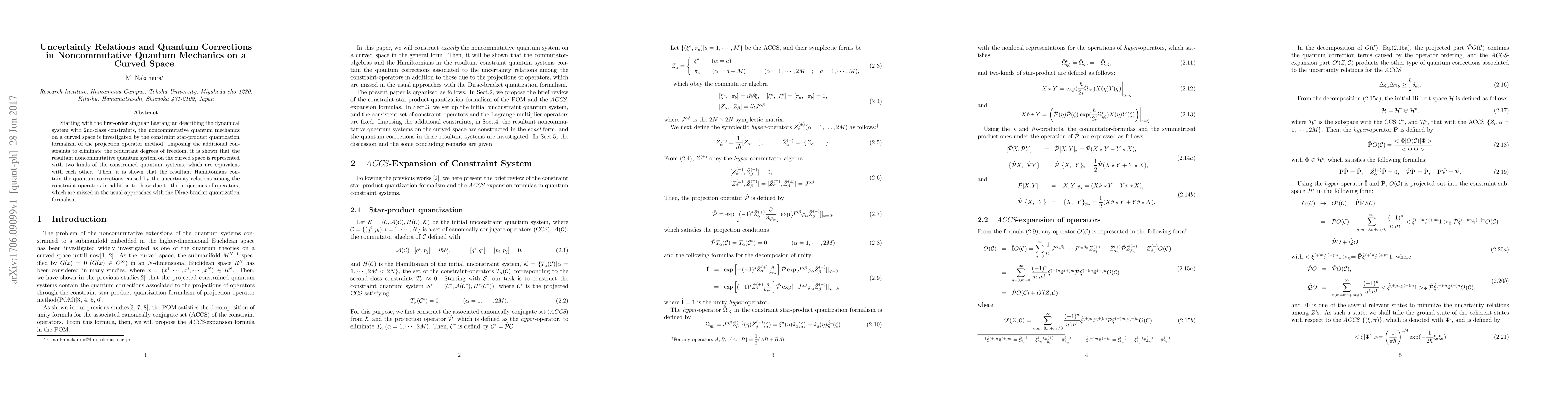 Starting with the first-order singular Lagrangian describing the dynamical system with 2nd-class constraints, the noncommutative quantum mechanics on a curved space is investigated by the constraint star-product quantization formalism of the projection operator method. Imposing the additional constraints to eliminate the reduntant degrees of freedom, it is shown that the resultant noncommutative quantum system on the curved space is represented with two kinds of the constrained quantum systems, which are equivalent with each other. Then, it is shown that the resultant Hamiltonians contain the quantum corrections caused by the uncertainty relations among the constraint-operators in addition to those due to the projections of operators, which are missed in the usual approaches with the Dirac-bracket quantization formalism.