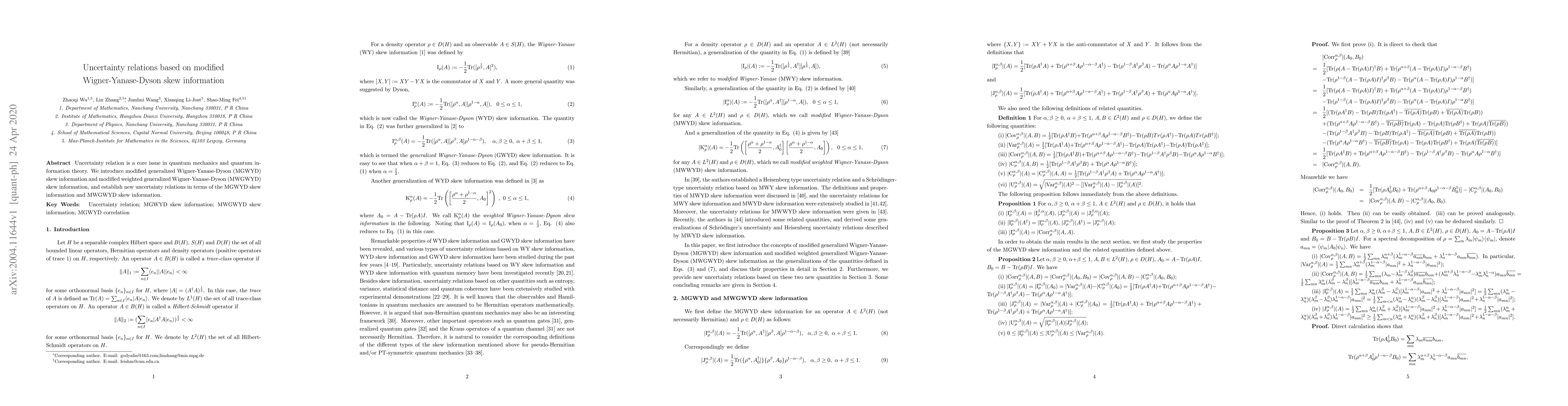 This paper introduces modified generalized Wigner-Yanase-Dyson (MGWYD) and modified weighted generalized Wigner-Yanase-Dyson (MWGWYD) skew information to establish new uncertainty relations, enhancing the understanding of quantum mechanics and quantum information theory.