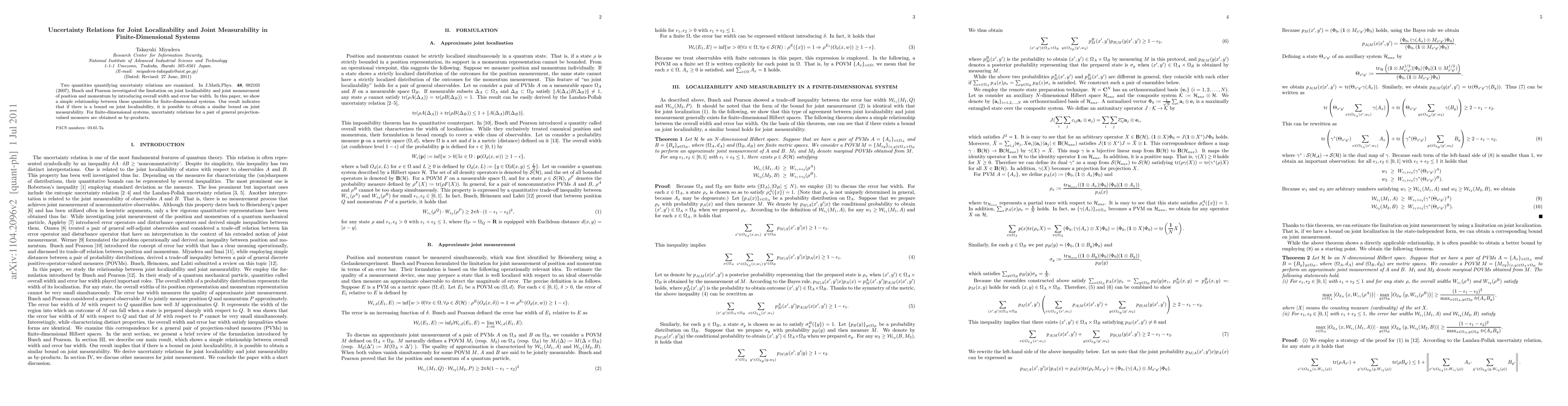 Two quantities quantifying uncertainty relations are examined. In J.Math.Phys. 48, 082103 (2007), Busch and Pearson investigated the limitation on joint localizability and joint measurement of position and momentum by introducing overall width and error bar width. In this paper, we show a simple relationship between these quantities for finite-dimensional systems. Our result indicates that if there is a bound on joint localizability, it is possible to obtain a similar bound on joint measurability. For finite-dimensional systems, uncertainty relations for a pair of general projection-valued measures are obtained as by-products.
