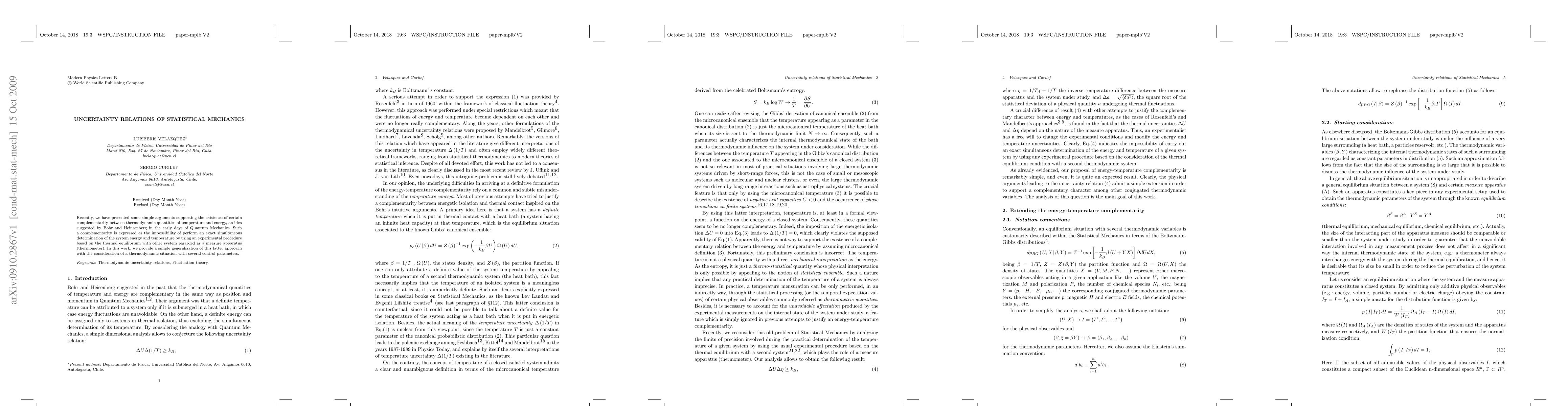 Recently, we have presented some simple arguments supporting the existence of certain complementarity between thermodynamic quantities of temperature and energy, an idea suggested by Bohr and Heinsenberg in the early days of Quantum Mechanics. Such a complementarity is expressed as the impossibility of perform an exact simultaneous determination of the system energy and temperature by using an experimental procedure based on the thermal equilibrium with other system regarded as a measure apparatus (thermometer). In this work, we provide a simple generalization of this latter approach with the consideration of a thermodynamic situation with several control parameters.