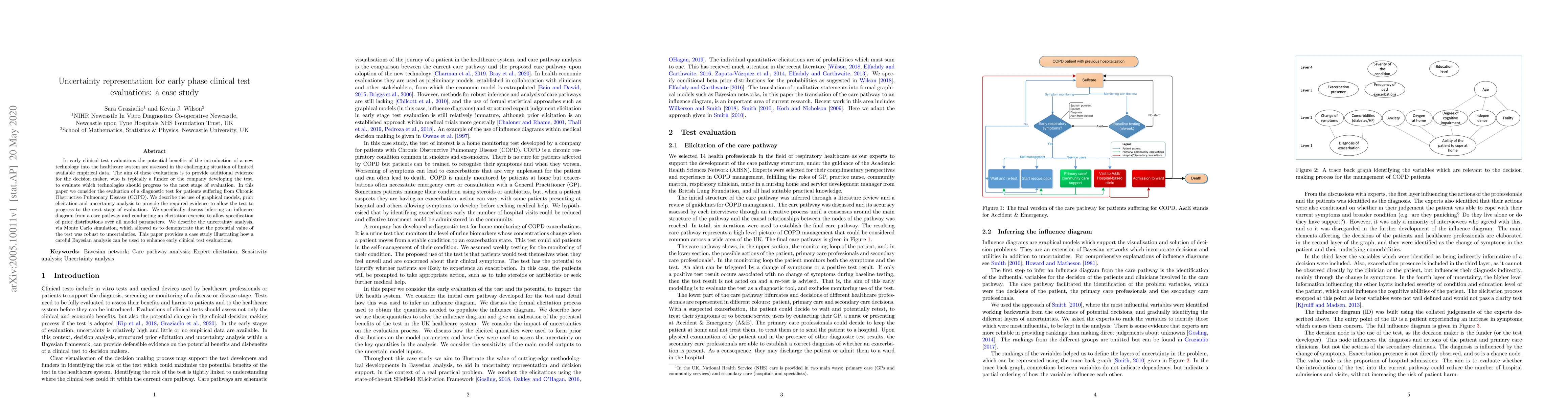 In early clinical test evaluations the potential benefits of the introduction of a new technology into the healthcare system are assessed in the challenging situation of limited available empirical data. The aim of these evaluations is to provide additional evidence for the decision maker, who is typically a funder or the company developing the test, to evaluate which technologies should progress to the next stage of evaluation. In this paper we consider the evaluation of a diagnostic test for patients suffering from Chronic Obstructive Pulmonary Disease (COPD). We describe the use of graphical models, prior elicitation and uncertainty analysis to provide the required evidence to allow the test to progress to the next stage of evaluation. We specifically discuss inferring an influence diagram from a care pathway and conducting an elicitation exercise to allow specification of prior distributions over all model parameters. We describe the uncertainty analysis, via Monte Carlo simulation, which allowed us to demonstrate that the potential value of the test was robust to uncertainties. This paper provides a case study illustrating how a careful Bayesian analysis can be used to enhance early clinical test evaluations.