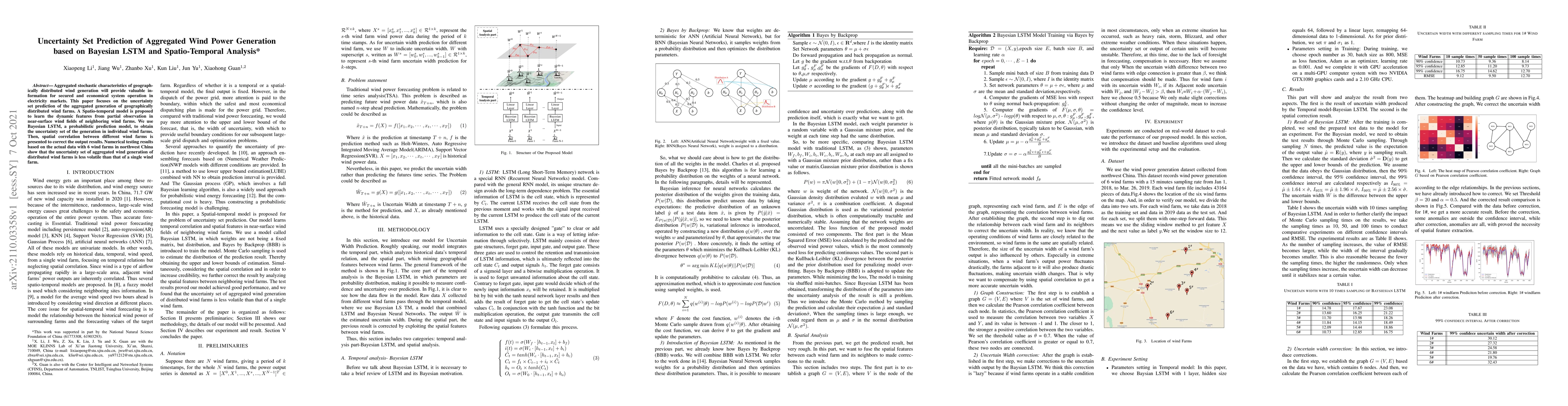This paper proposes a spatio-temporal model using Bayesian LSTM to predict the uncertainty set of aggregated wind power generation from geographically distributed wind farms. The model corrects the output by considering spatial correlations between wind farms, demonstrating reduced volatility in aggregated uncertainty compared to individual farms.