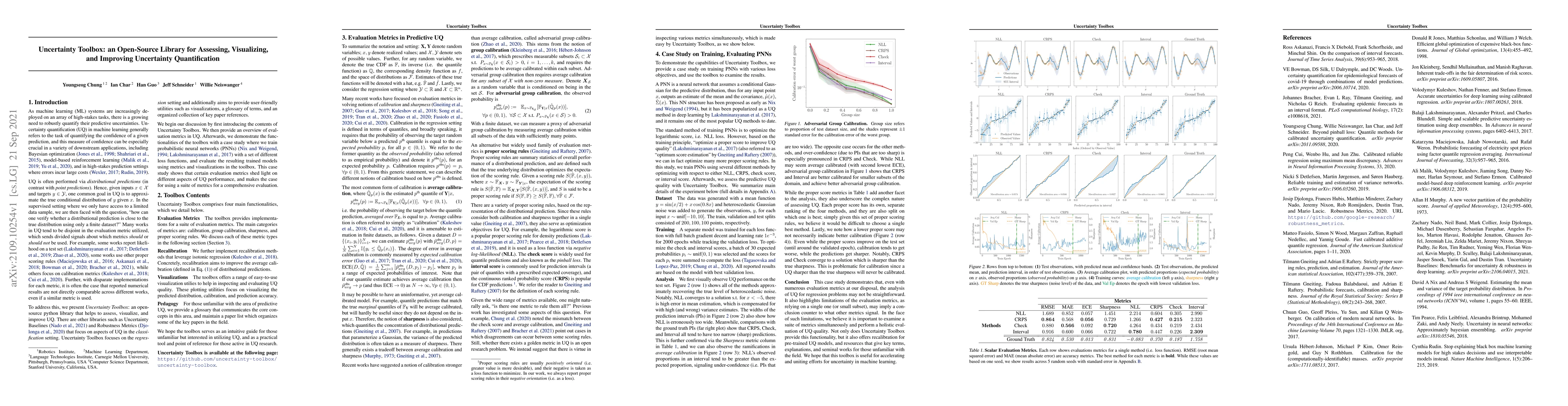 The Uncertainty Toolbox is an open-source Python library designed to standardize and enhance uncertainty quantification in machine learning, offering tools for assessment, visualization, and improvement. It aims to unify research efforts by providing consistent evaluation metrics and pedagogical resources.