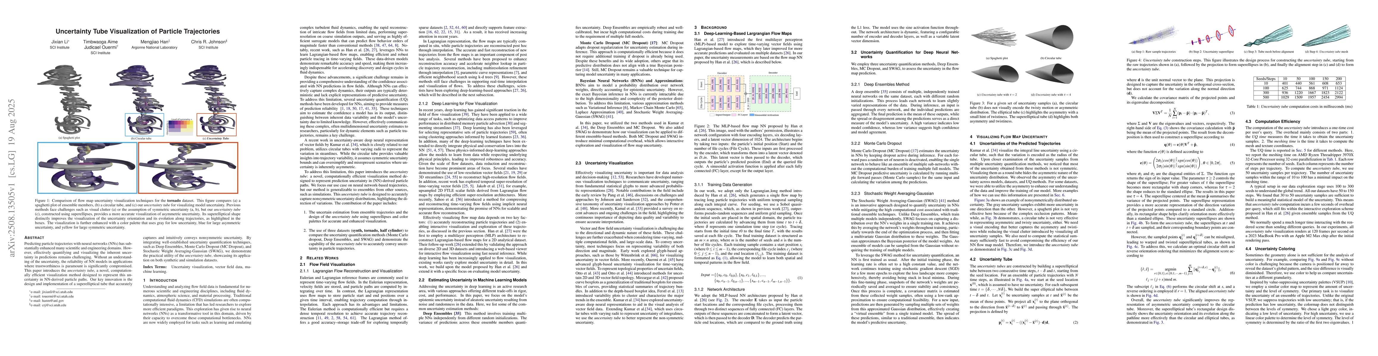 Predicting particle trajectories with neural networks (NNs) has substantially enhanced many scientific and engineering domains. However, effectively quantifying and visualizing the inherent uncertainty in predictions remains challenging. Without an understanding of the uncertainty, the reliability of NN models in applications where trustworthiness is paramount is significantly compromised. This paper introduces the uncertainty tube, a novel, computationally efficient visualization method designed to represent this uncertainty in NN-derived particle paths. Our key innovation is the design and implementation of a superelliptical tube that accurately captures and intuitively conveys nonsymmetric uncertainty. By integrating well-established uncertainty quantification techniques, such as Deep Ensembles, Monte Carlo Dropout (MC Dropout), and Stochastic Weight Averaging-Gaussian (SWAG), we demonstrate the practical utility of the uncertainty tube, showcasing its application on both synthetic and simulation datasets.