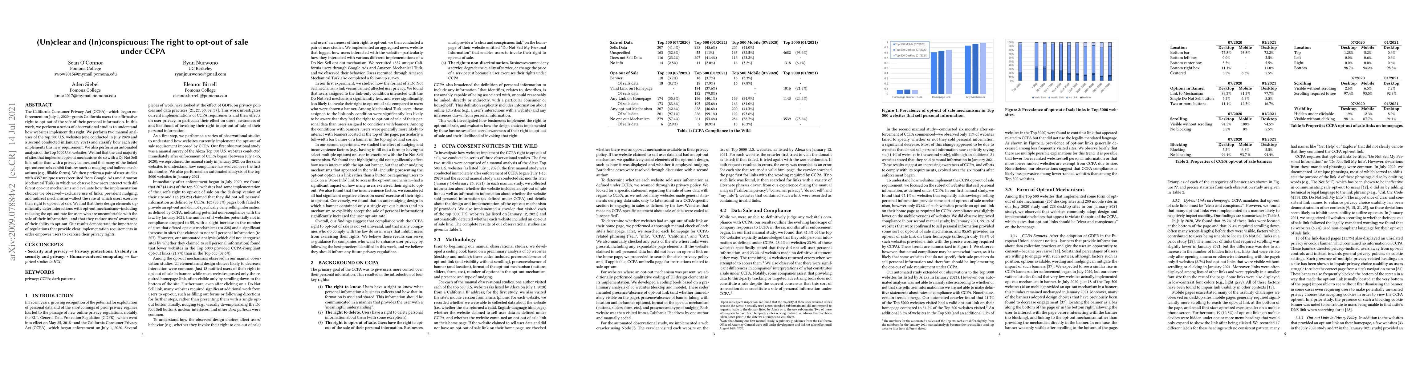 The California Consumer Privacy Act (CCPA) -- which began enforcement on July 1, 2020 -- grants California users the affirmative right to opt-out of the sale of their personal information. In this work, we perform a series of observational studies to understand how websites implement this right. We perform two manual analyses of the top 500 U.S. websites (one conducted in July 2020 and a second conducted in January 2021) and classify how each site implements this new requirement. We also perform an automated analysis of the Top 5000 U.S. websites. We find that the vast majority of sites that implement opt-out mechanisms do so with a Do Not Sell link rather than with a privacy banner, and that many of the linked opt-out controls exhibit features such as nudging and indirect mechanisms (e.g., fillable forms). We then perform a pair of user studies with 4357 unique users (recruited from Google Ads and Amazon Mechanical Turk) in which we observe how users interact with different opt-out mechanisms and evaluate how the implementation choices we observed -- exclusive use of links, prevalent nudging, and indirect mechanisms -- affect the rate at which users exercise their right to opt-out of sale. We find that these design elements significantly deter interactions with opt-out mechanisms -- including reducing the opt-out rate for users who are uncomfortable with the sale of their information -- and that they reduce users' awareness of their ability to opt-out. Our results demonstrate the importance of regulations that provide clear implementation requirements in order empower users to exercise their privacy rights.