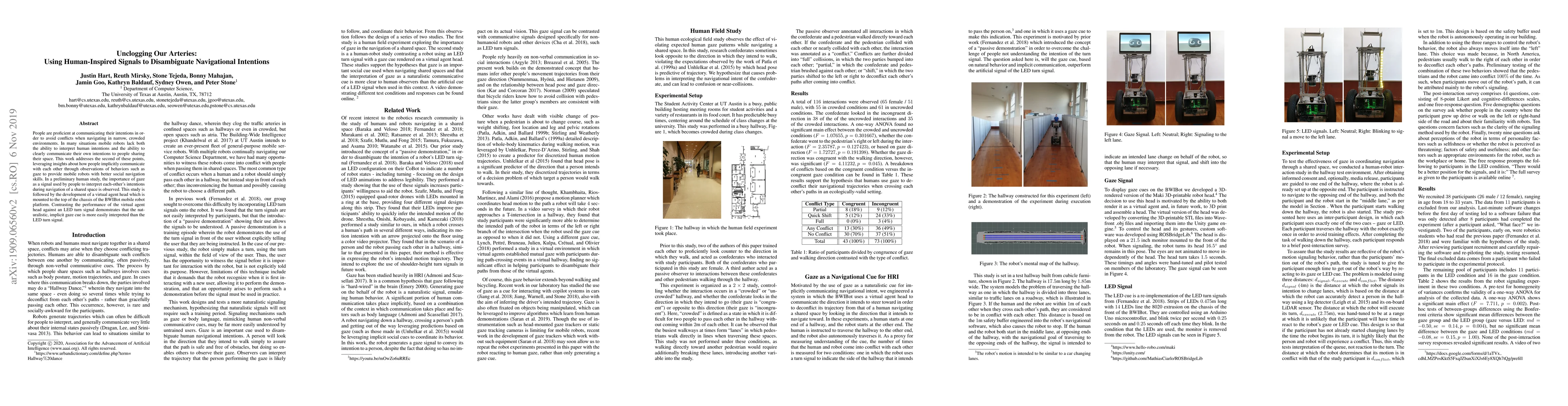 This research explores how human-inspired signals, particularly gaze, can help mobile robots better communicate their navigational intentions in crowded environments. Preliminary human studies show that gaze is a significant implicit signal for interpreting human intentions, leading to the development of a virtual agent head on a robot that outperforms an LED signal in clarity of communication.