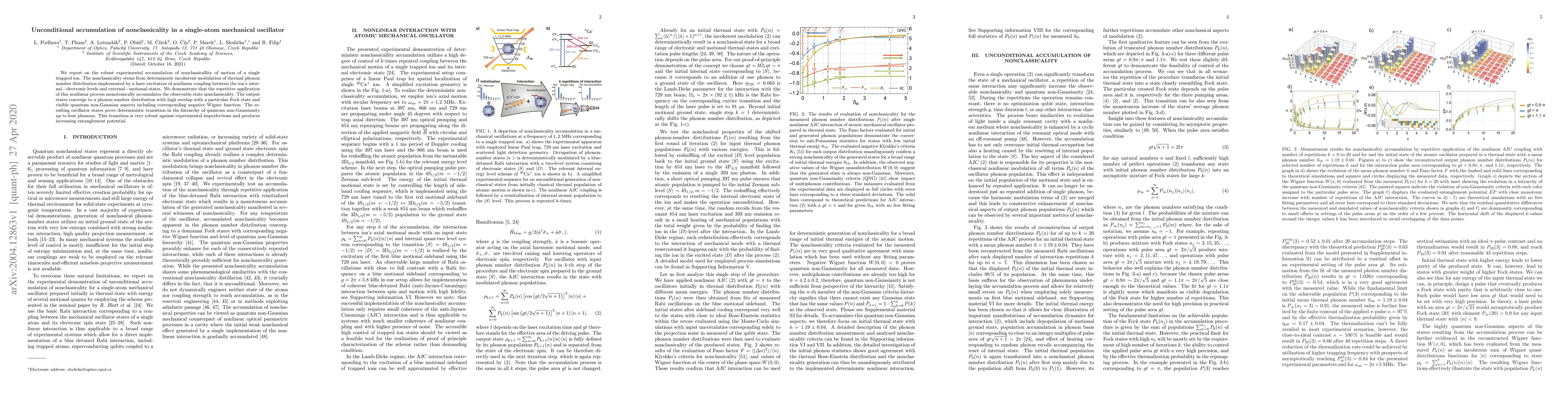 This paper demonstrates the experimental accumulation of nonclassicality in a single trapped ion's mechanical oscillator through deterministic incoherent modulation, showing a transition to higher quantum non-Gaussian states and robust entanglement potential despite experimental imperfections.