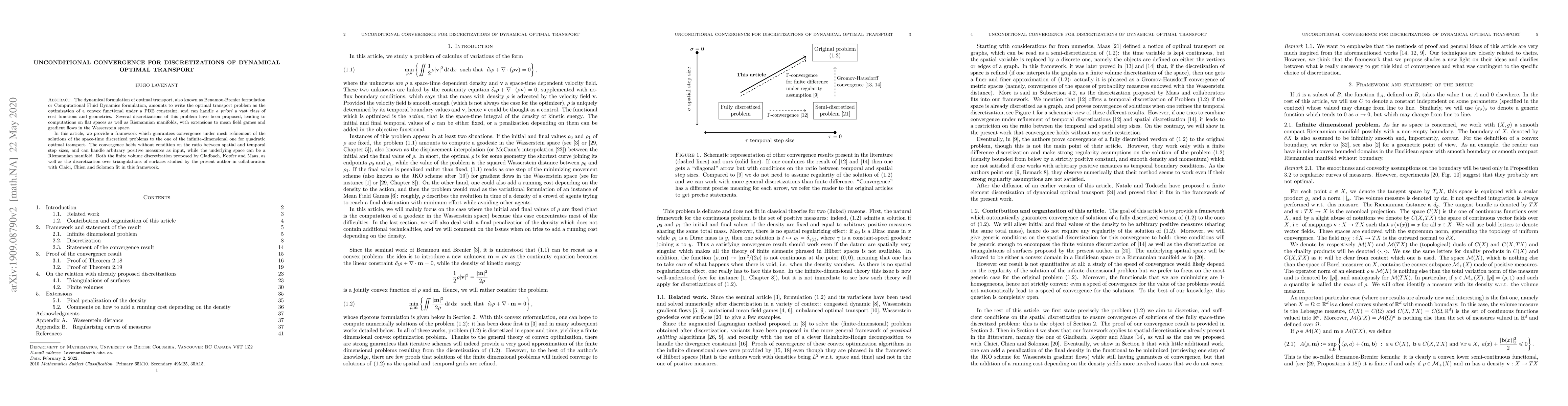 This paper establishes a framework ensuring unconditional convergence of discretizations for the dynamical optimal transport problem, guaranteeing that solutions converge to the infinite-dimensional solution under mesh refinement, regardless of the spatial-temporal step size ratio, and applicable to Riemannian manifolds and various cost functions.