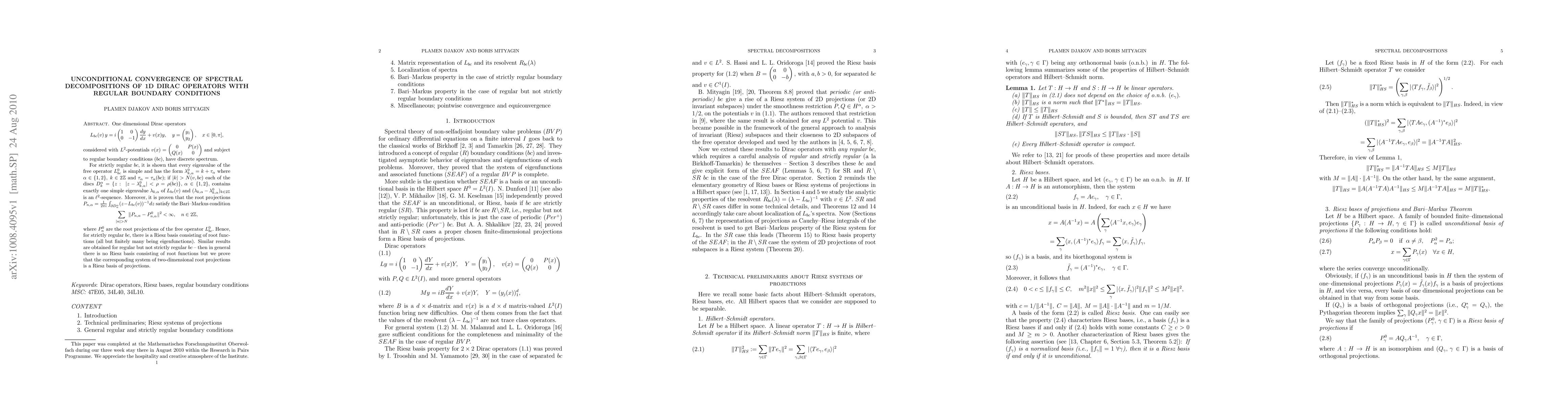 The paper establishes conditions under which spectral decompositions of Dirac operators converge unconditionally, providing a rigorous mathematical framework for analyzing these operators.