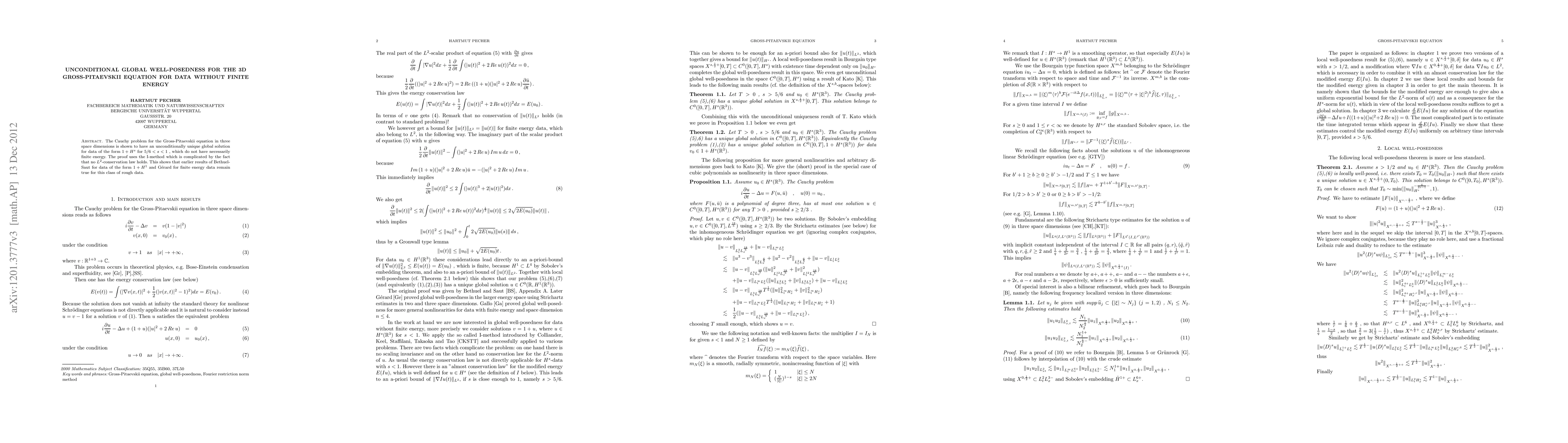 The 3D Gross-Pitaevskii equation has an unconditionally unique global solution for data without finite energy, improving upon previous results. This breakthrough uses the I-method to prove unconditional global well-posedness for certain types of initial conditions.