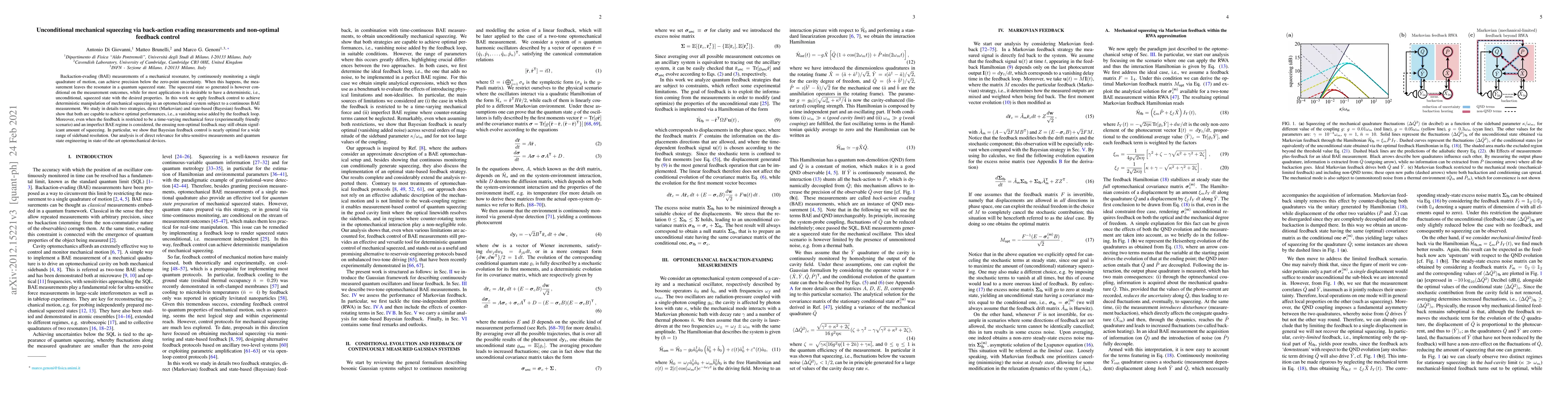 This paper explores unconditional mechanical squeezing in optomechanical systems through back-action evading measurements and feedback control. It demonstrates that both Markovian and Bayesian feedback strategies can achieve optimal performance, generating deterministic squeezed states even under non-optimal conditions.