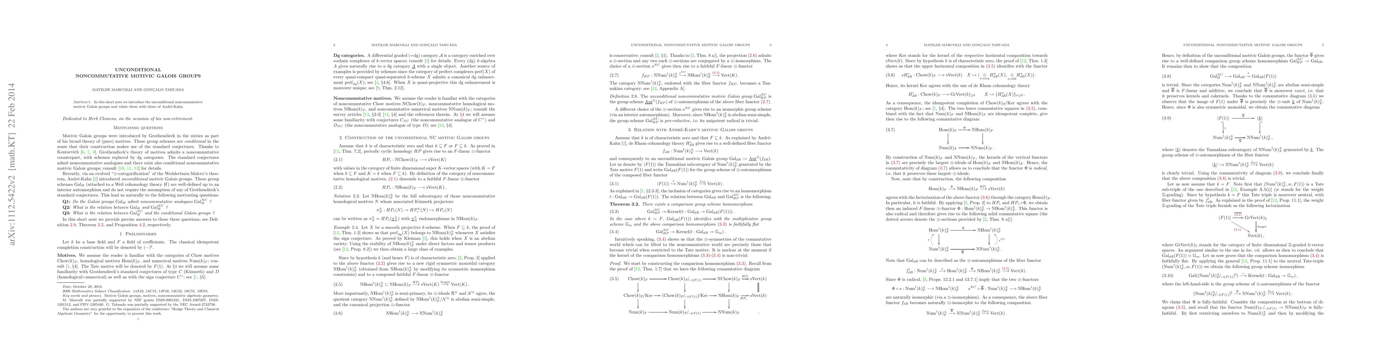 Summary: This paper introduces unconditional noncommutative motivic Galois groups and establishes a connection between these new groups and those previously defined by Andre-Kahn. The work aims to extend the understanding of noncommutative algebraic structures in motivic contexts.
