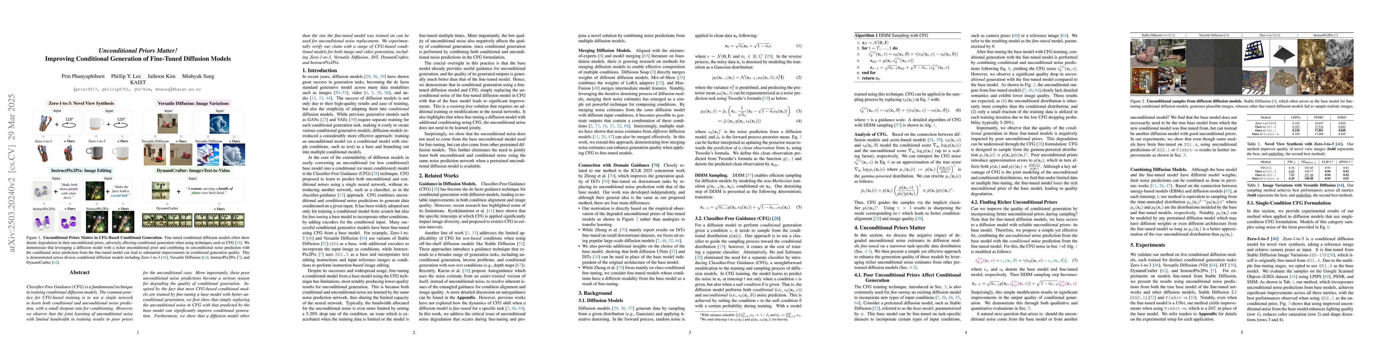 This paper argues that using better unconditional priors during training improves conditional generation in fine-tuned diffusion models. It demonstrates that replacing the poor unconditional noise predictions with those from a base model significantly enhances the quality of conditional outputs across various CFG-based models.