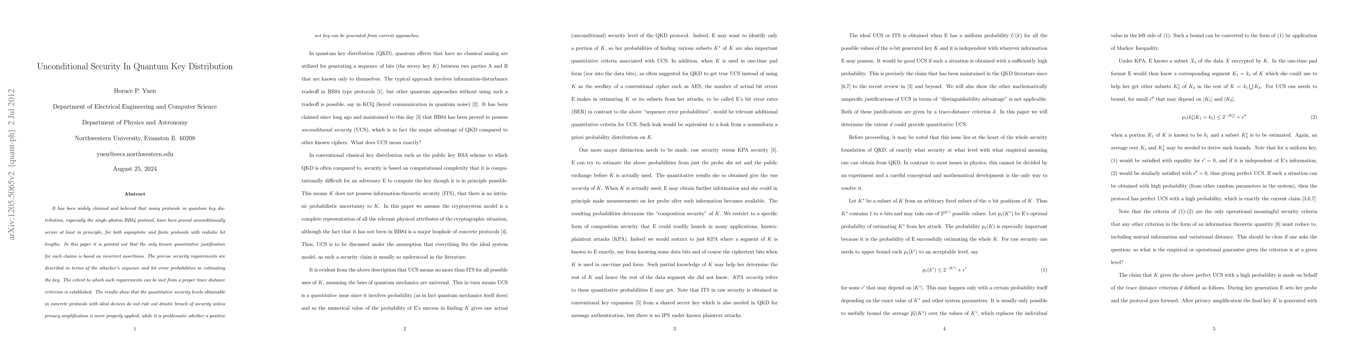 This paper argues that claims of unconditional security in quantum key distribution protocols, such as the BB84 protocol, are not well-founded due to incorrect assertions. It establishes precise security criteria based on attacker error probabilities and shows that without proper privacy amplification, concrete protocols may still face significant security breaches.