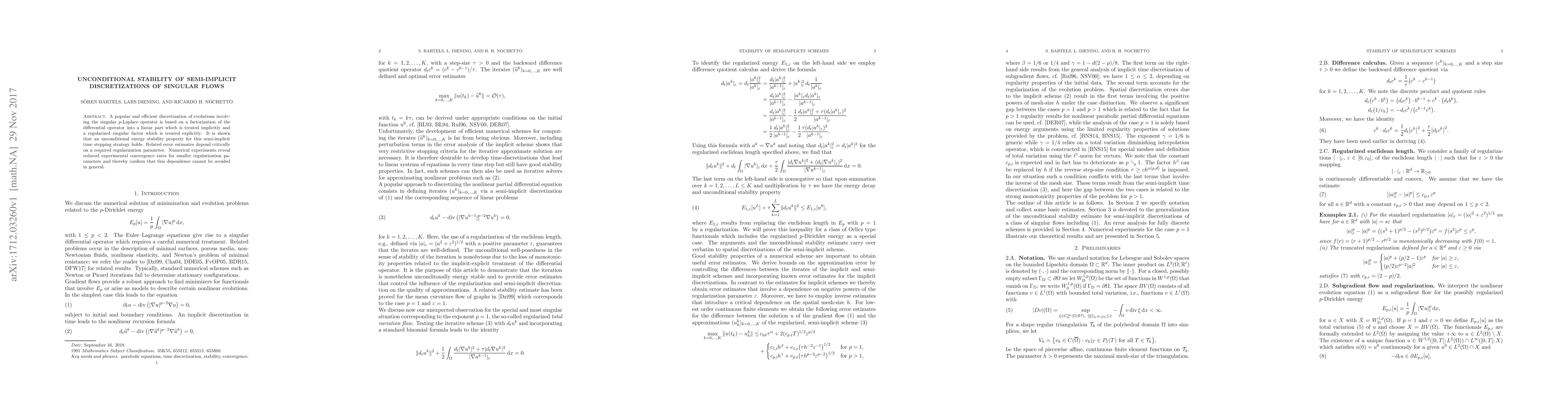 Researchers show that a popular discretization method for singular flows is unconditionally stable, but smaller regularization parameters lead to slower convergence rates in numerical experiments.