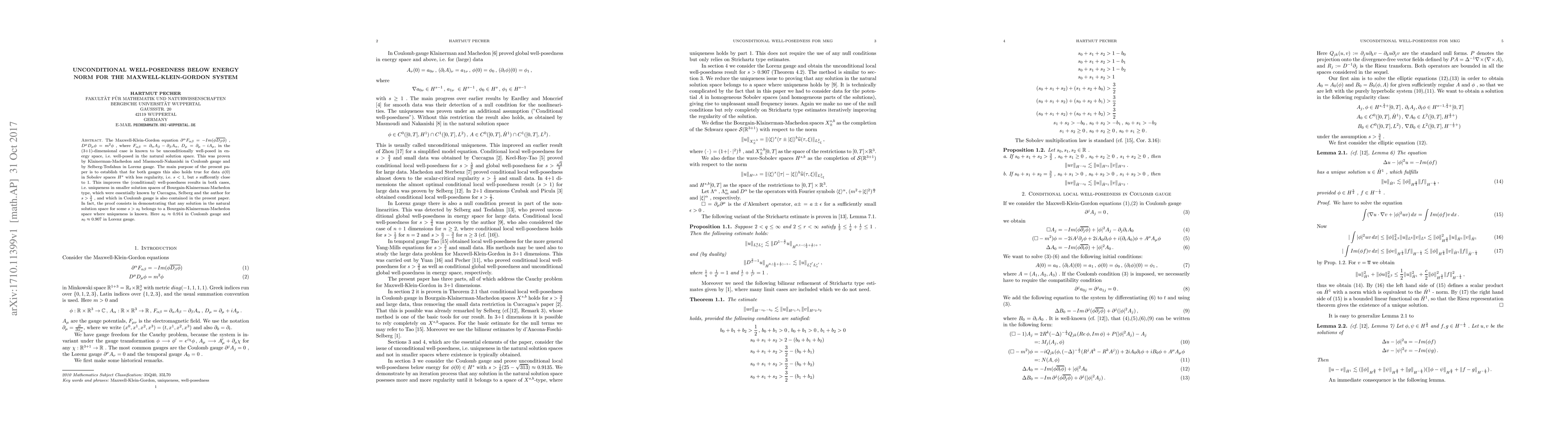 The Maxwell-Klein-Gordon equation $ \partial^{\alpha} F_{\alpha \beta} = -Im(\Phi \overline{D_{\beta} \Phi}) $ , $ D^{\mu}D_{\mu} \Phi = m^2 \Phi $ , where $F_{\alpha \beta} = \partial_{\alpha} A_{\beta} - \partial_{\beta} A_{\alpha}$, $D_{\mu} = \partial_{\mu} - iA_{\mu} $, in the (3+1)-dimensional case is known to be unconditionally well-posed in energy space, i.e. well-posed in the natural solution space. This was proven by Klainerman-Machedon and Masmoudi-Nakanishi in Coulomb gauge and by Selberg-Tesfahun in Lorenz gauge. The main purpose of the present paper is to establish that for both gauges this also holds true for data $\Phi(0)$ in Sobolev spaces $H^s$ with less regularity, i.e. $s < 1$, but $s$ sufficently close to $1$. This improves the (conditional) well-posedness results in both cases, i.e. uniqueness in smaller solution spaces of Bourgain-Klainerman-Machedon type, which were essentially known by Cuccagna, Selberg and the author for $s > \frac{3}{4}$ , and which in Coulomb gauge is also contained in the present paper. In fact, the proof consists in demonstrating that any solution in the natural solution space for some $s > s_0$ belongs to a Bourgain-Klainerman-Machedon space where uniqueness is known. Here $s_0 \approx 0.914$ in Coulomb gauge and $s_0 \approx 0.907$ in Lorenz gauge.
