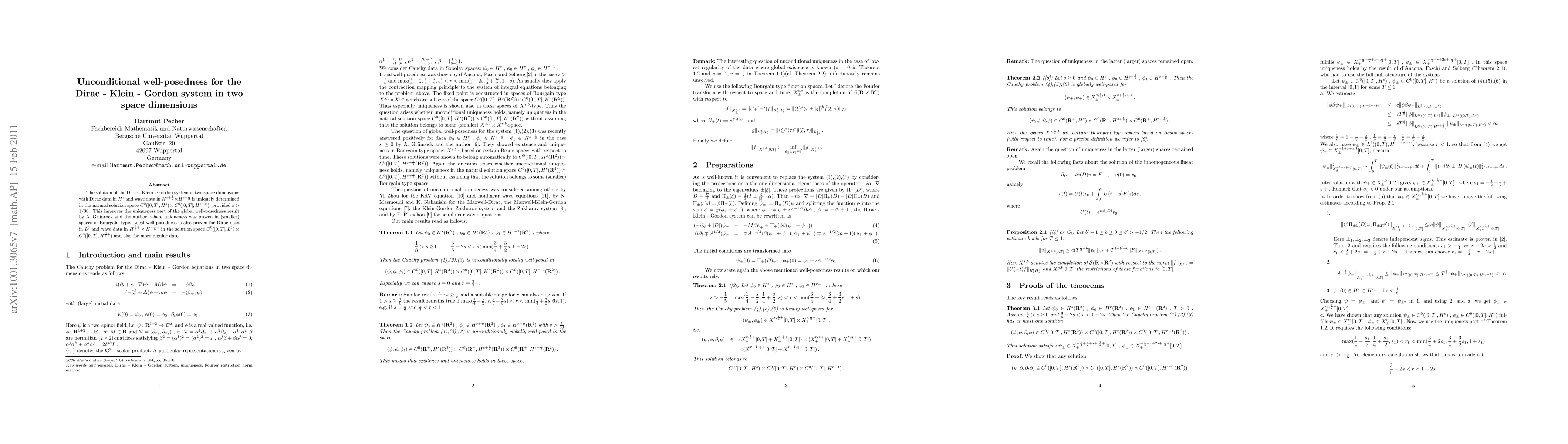 This paper establishes unconditional well-posedness for the Dirac-Klein-Gordon system in two dimensions, proving uniqueness of solutions for certain Sobolev data. It improves previous results by demonstrating global uniqueness in higher regularity spaces.
