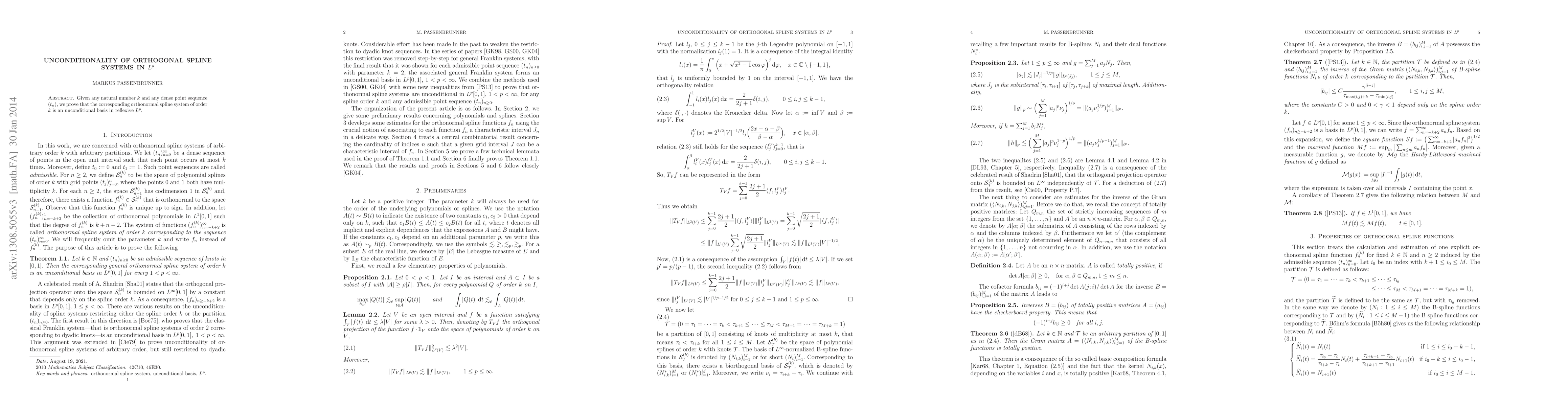 A new study proves that orthogonal spline systems of order k are unconditional bases in reflexive L^p spaces for any natural number k, regardless of the dense point sequence used to create them.