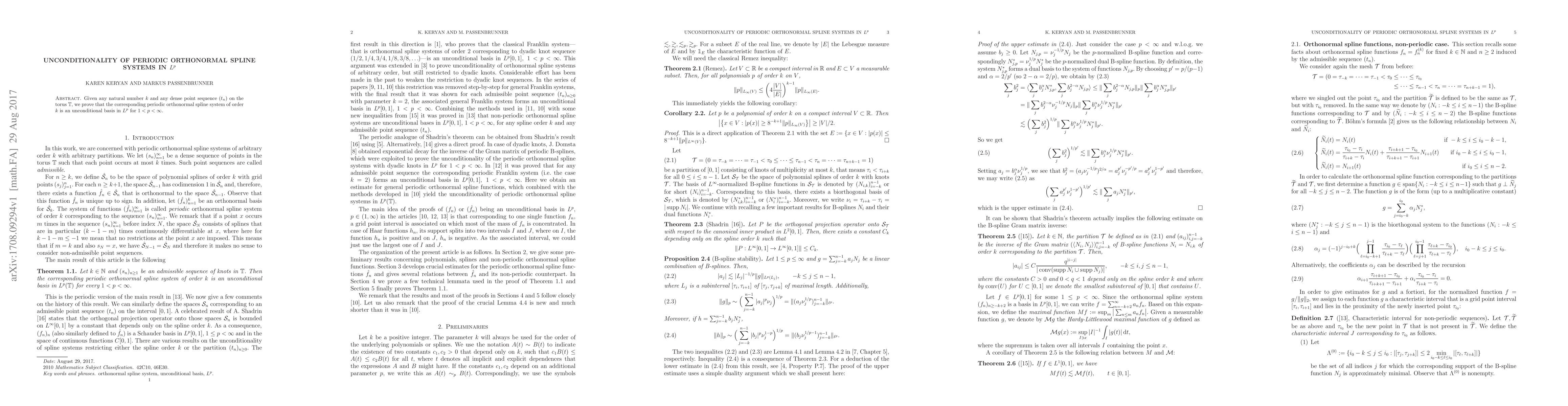Researchers prove that periodic orthonormal spline systems of a certain order can serve as unconditional bases in $L^p$ spaces for 1<p<ω