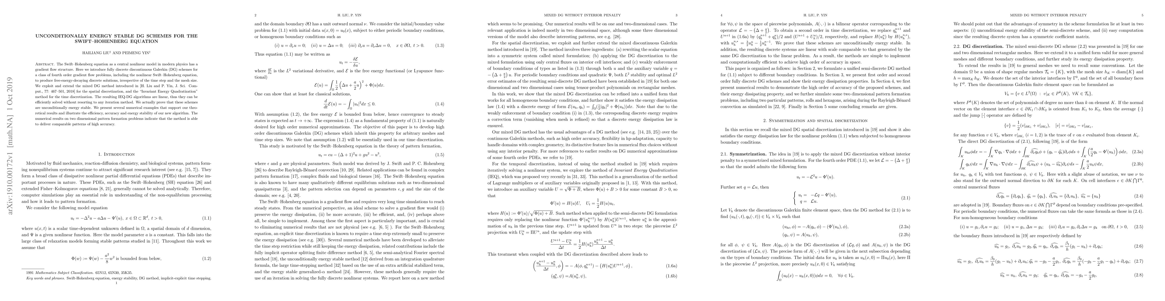 Researchers developed new numerical methods for solving the Swift-Hohenberg equation, a nonlinear model in modern physics, which produce stable solutions without relying on iteration or energy instability.