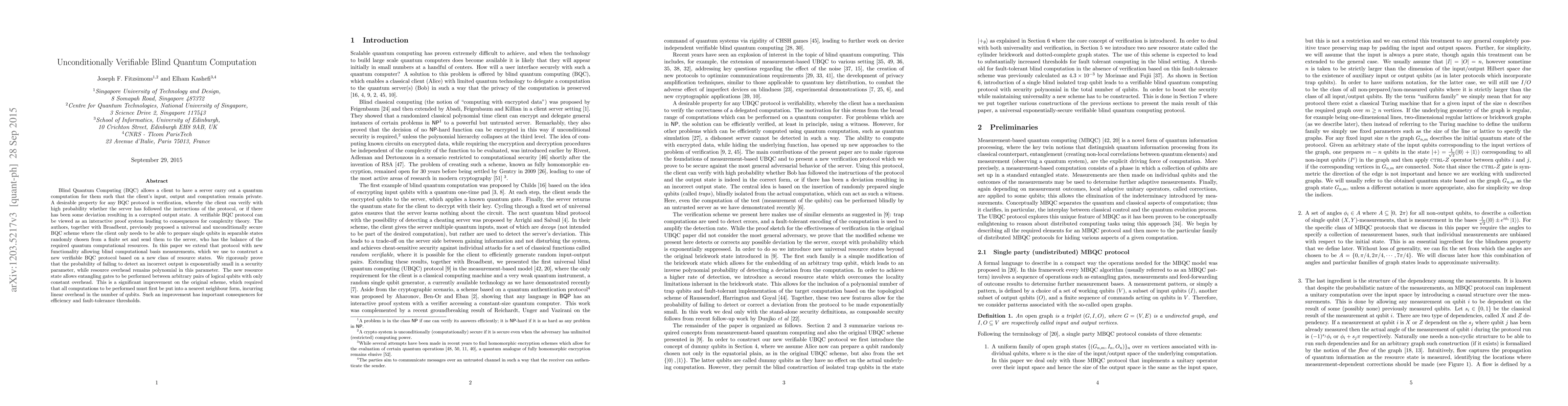The paper extends a previous universal and unconditionally secure Blind Quantum Computing (BQC) protocol by introducing new functionality for blind computational basis measurements, using a novel class of resource states.