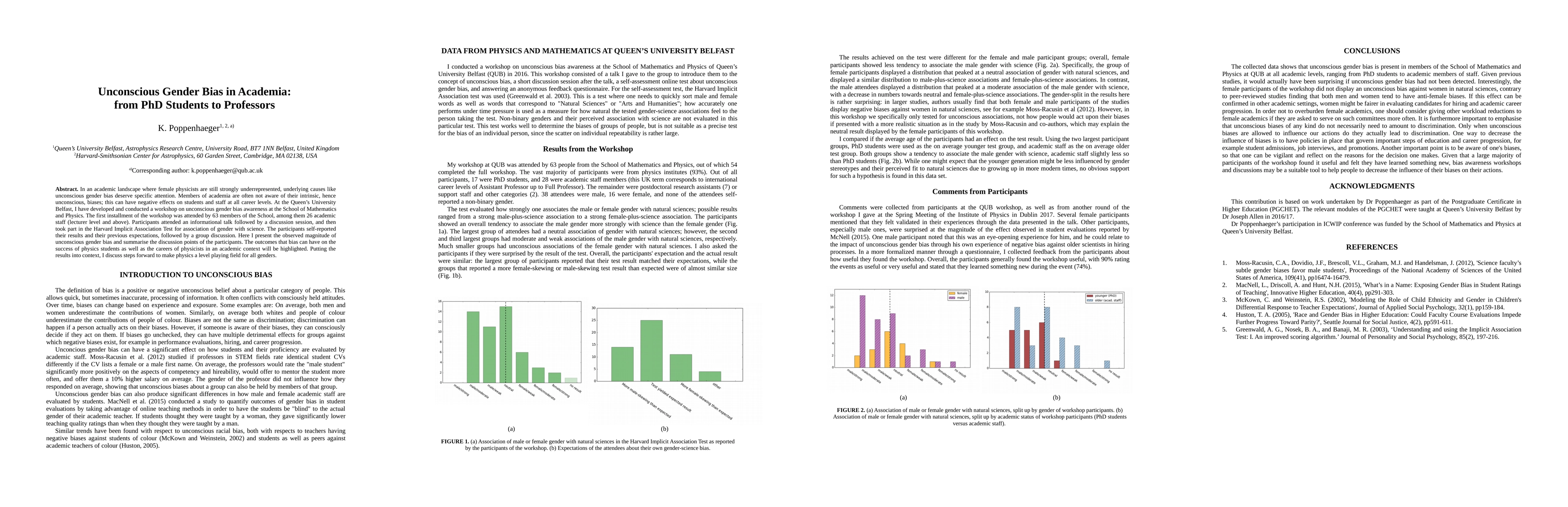 This study explores unconscious gender bias in academia, particularly in physics, through a workshop at Queen's University Belfast. The workshop included an implicit association test and revealed significant unconscious biases, highlighting their impact on students and careers, and proposing steps to create a more equitable academic environment.