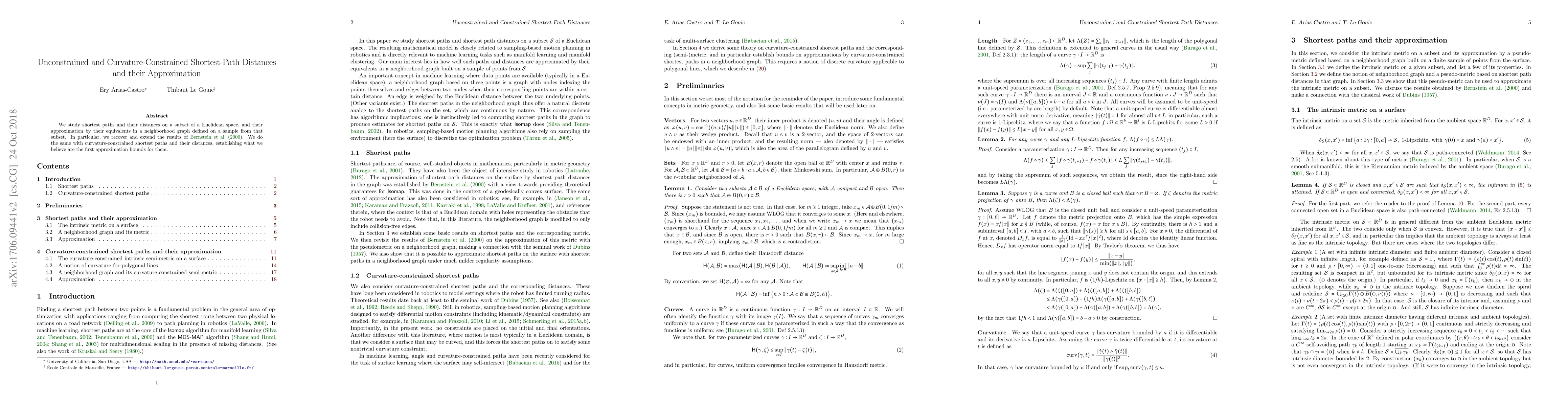 We study shortest paths and their distances on a subset of a Euclidean space, and their approximation by their equivalents in a neighborhood graph defined on a sample from that subset. In particular, we recover and extend the results of Bernstein et al. (2000). We do the same with curvature-constrained shortest paths and their distances, establishing what we believe are the first approximation bounds for them.