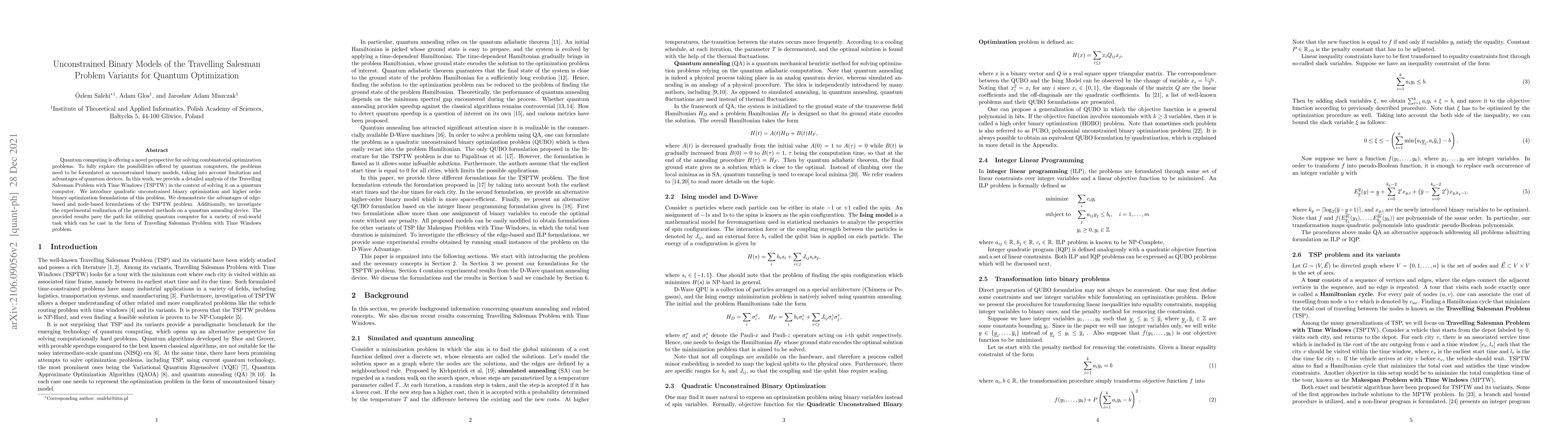This paper explores quantum computing's potential for solving the Travelling Salesman Problem with Time Windows (TSPTW) through unconstrained binary models. It introduces quadratic and higher-order binary optimization formulations and demonstrates their effectiveness on a quantum annealing device.