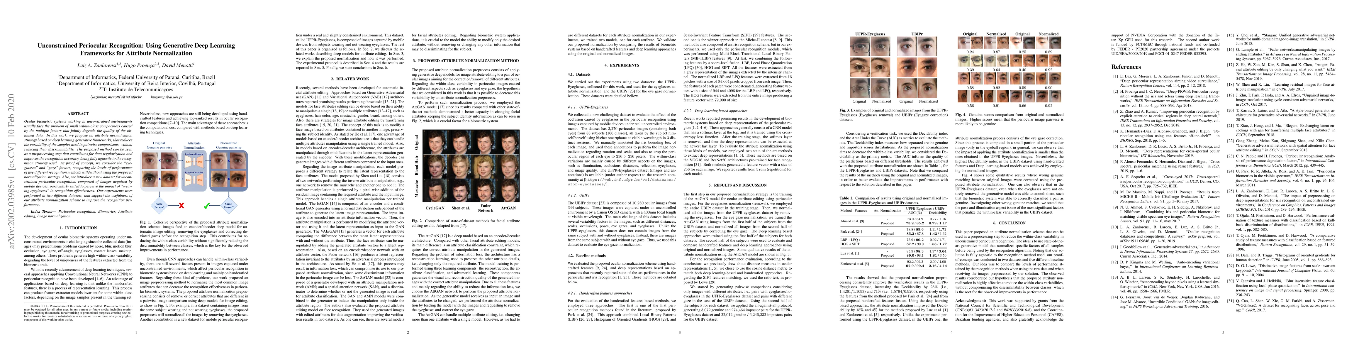 This paper proposes a deep learning-based attribute normalization strategy to enhance unconstrained periocular recognition by reducing sample variability without compromising discriminability. Experiments show improved recognition accuracy across various methods, supported by a new dataset highlighting the impact of eyeglasses.
