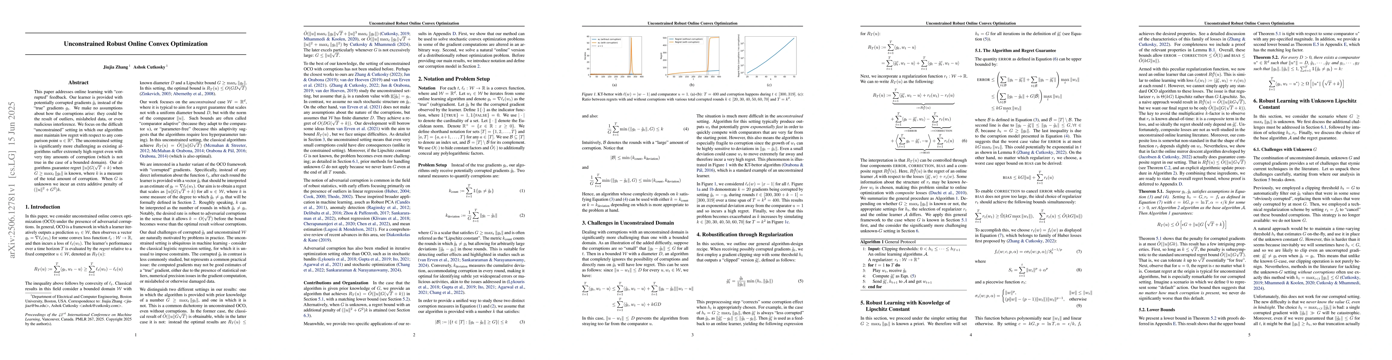 This paper addresses online learning with ``corrupted'' feedback. Our learner is provided with potentially corrupted gradients $\tilde g_t$ instead of the ``true'' gradients $g_t$. We make no assumptions about how the corruptions arise: they could be the result of outliers, mislabeled data, or even malicious interference. We focus on the difficult ``unconstrained'' setting in which our algorithm must maintain low regret with respect to any comparison point $u \in \mathbb{R}^d$. The unconstrained setting is significantly more challenging as existing algorithms suffer extremely high regret even with very tiny amounts of corruption (which is not true in the case of a bounded domain). Our algorithms guarantee regret $ \|u\|G (\sqrt{T} + k) $ when $G \ge \max_t \|g_t\|$ is known, where $k$ is a measure of the total amount of corruption. When $G$ is unknown we incur an extra additive penalty of $(\|u\|^2+G^2) k$.