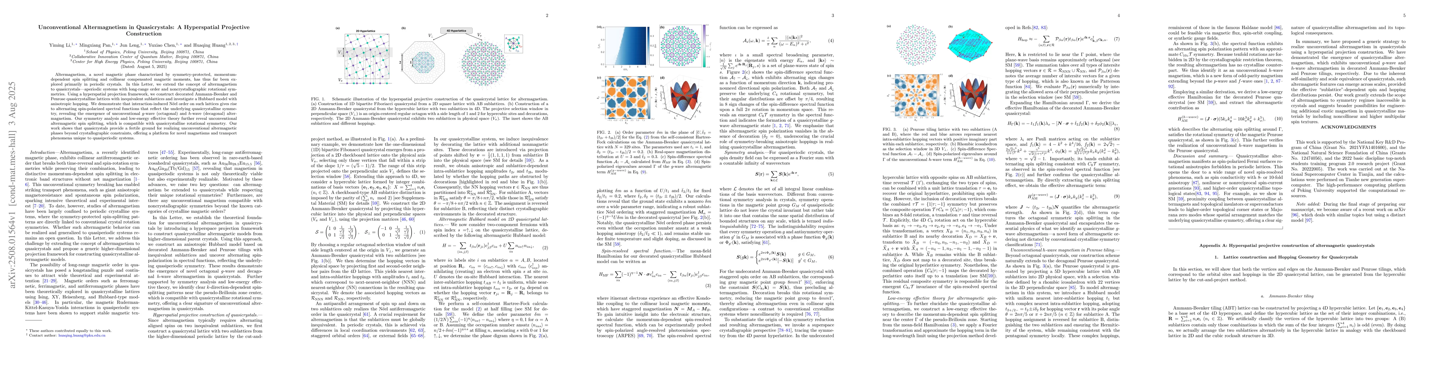 Altermagnetism, a novel magnetic phase characterized by symmetry-protected, momentum-dependent spin splitting and collinear compensated magnetic moments, has thus far been explored primarily in periodic crystals. In this Letter, we extend the concept of altermagnetism to quasicrystals -- aperiodic systems with long-range order and noncrystallographic rotational symmetries. Using a hyperspatial projection framework, we construct decorated Ammann-Beenker and Penrose quasicrystalline lattices with inequivalent sublattices and investigate a Hubbard model with anisotropic hopping. We demonstrate that interaction-induced N\'eel order on such lattices gives rise to alternating spin-polarized spectral functions that reflect the underlying quasicrystalline symmetry, revealing the emergence of unconventional $g$-wave (octagonal) and $h$-wave (decagonal) altermagnetism. Our symmetry analysis and low-energy effective theory further reveal unconventional altermagnetic spin splitting, which is compatible with quasicrystalline rotational symmetry. Our work shows that quasicrystals provide a fertile ground for realizing unconventional altermagnetic phases beyond crystallographic constraints, offering a platform for novel magnetisms and transport phenomena unique to quasiperiodic systems.