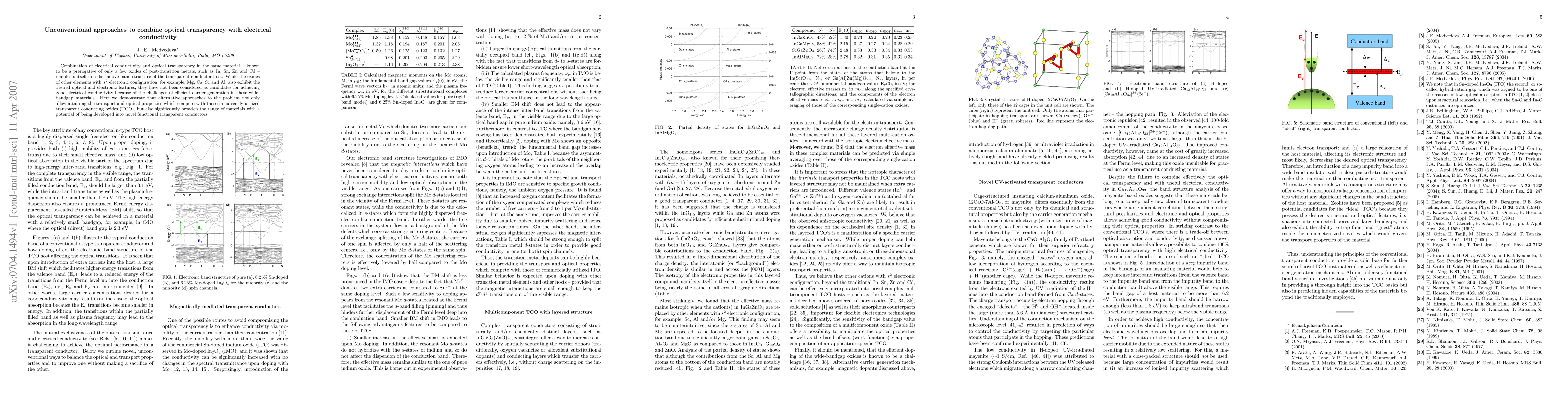 This paper explores unconventional methods to achieve both electrical conductivity and optical transparency in materials, traditionally limited to specific oxides, by demonstrating that alternative approaches can yield comparable properties in a wider range of materials, including oxides of Mg, Ca, Sc, and Al, which were previously deemed unsuitable.