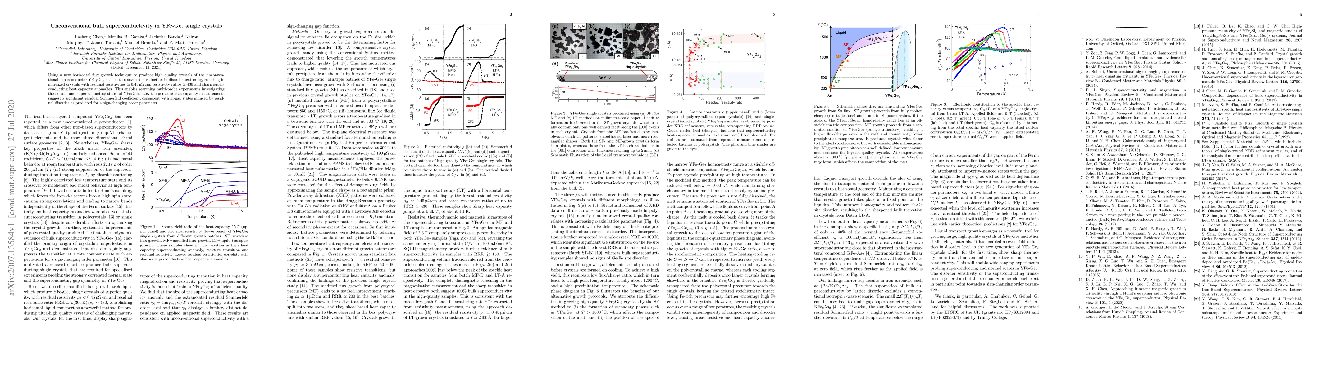 This study reports high-quality YFe$_2$Ge$_2$ single crystals produced via a new horizontal flux growth technique, showing reduced disorder scattering and sharp superconducting anomalies, enabling detailed multi-probe investigations. Low temperature heat capacity measurements indicate significant residual disorder effects, suggesting in-gap states and a sign-changing order parameter.