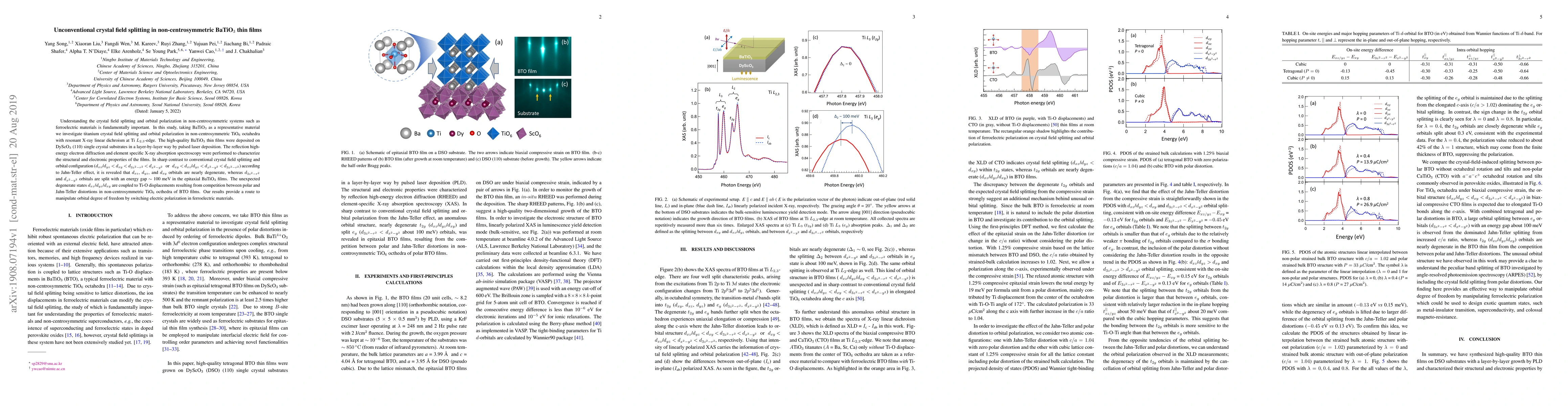 Researchers investigate titanium crystal field splitting in non-centrosymmetric BaTiO3 thin films using X-ray linear dichroism, finding nearly degenerate d-orbitals with an energy gap of ~100 meV. The study provides a route to manipulate orbital degree of freedom by switching electric polarization in ferroelectric materials.