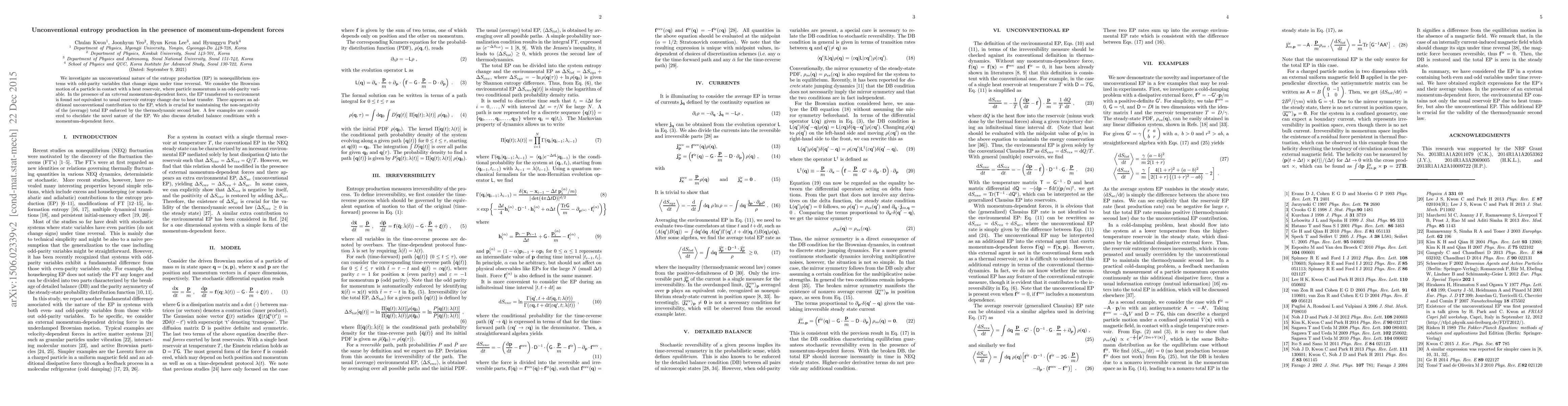 We investigate an unconventional nature of the entropy production (EP) in nonequilibrium systems with odd-parity variables that change signs under time reversal. We consider the Brownian motion of a particle in contact with a heat reservoir, where particle momentum is an odd-parity variable. In the presence of an {\it external} momentum-dependent force, the EP transferred to environment is found {\em not} equivalent to usual reservoir entropy change due to heat transfer. There appears an additional unconventional contribution to the EP, which is crucial for maintaining the non-negativity of the (average) total EP enforced by the thermodynamic second law. A few examples are considered to elucidate the novel nature of the EP. We also discuss detailed balance conditions with a momentum-dependent force.