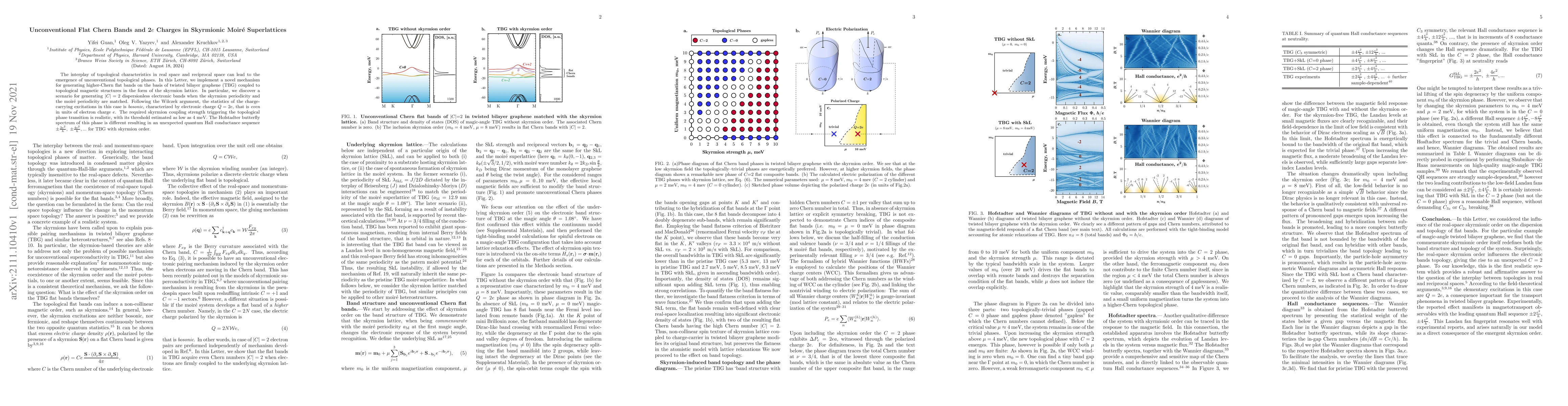 Researchers discovered a novel mechanism to generate flat bands in twisted bilayer graphene coupled with skyrmion lattices, leading to unconventional topological phases with 2e charges.